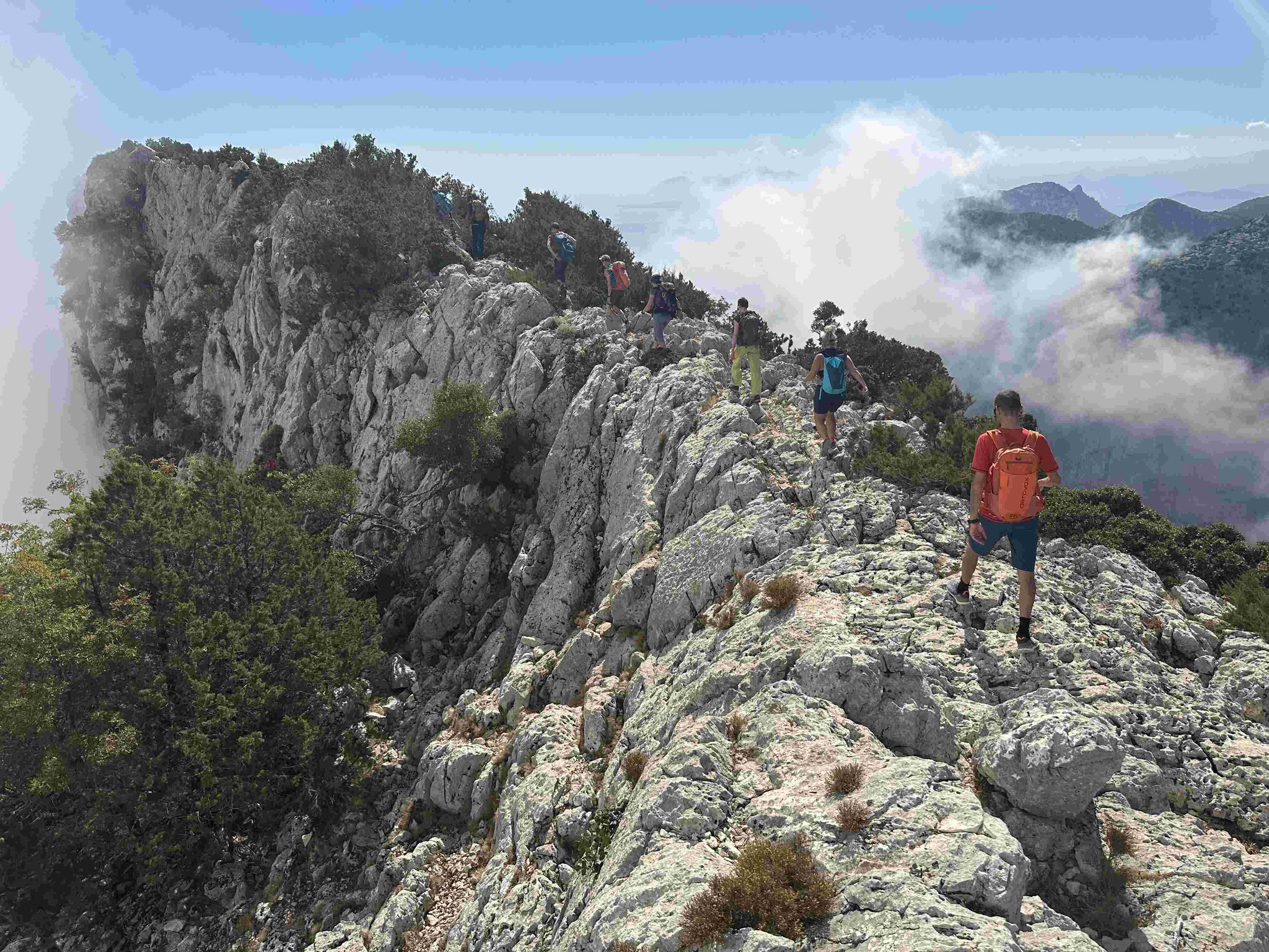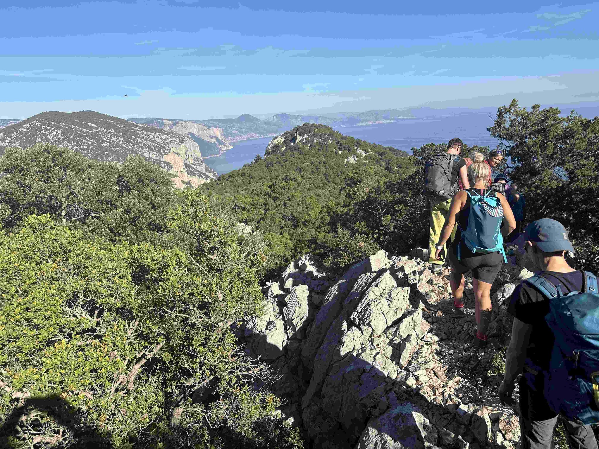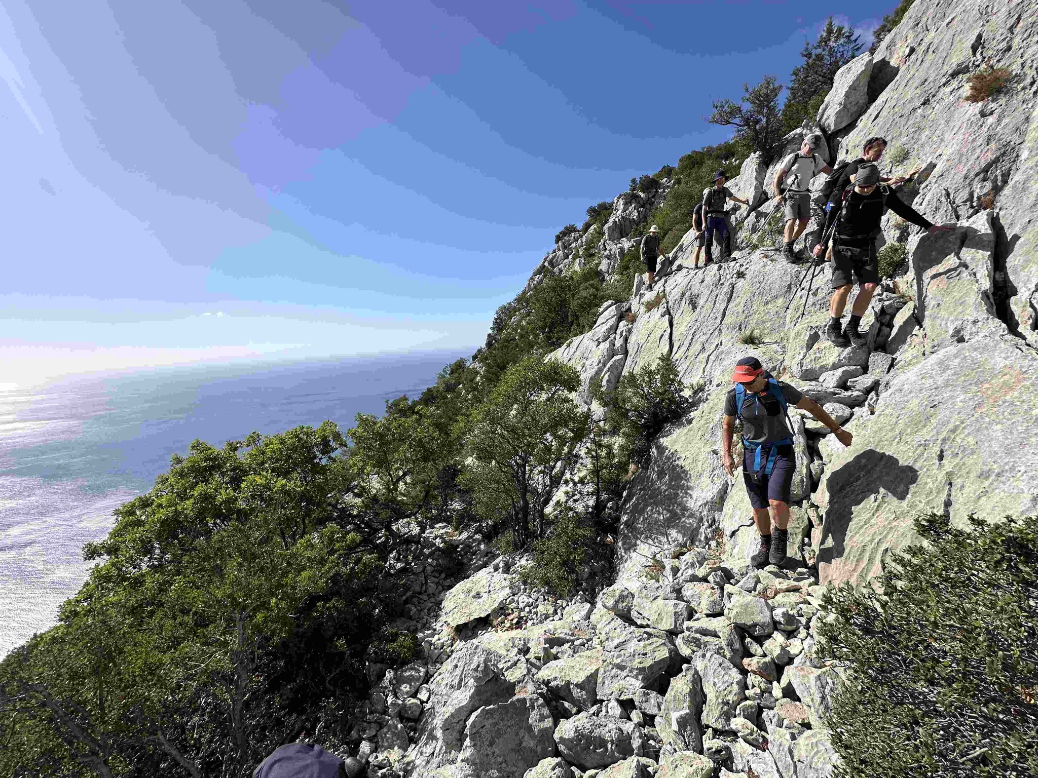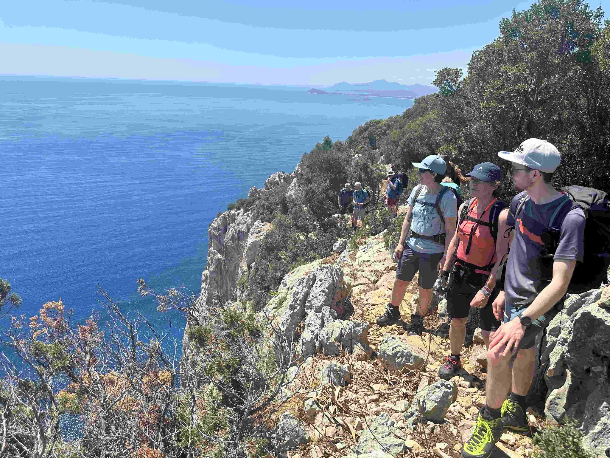 Die fünftägige Wanderung führt von Süden nach Norden, teilweise oberhalb und teilweise quer durch die Felswände zwischen Santa Maria Navarrese und Cala Sisine, wo es eigentlich keinen Platz für eine Trekkingroute gibt. Im mediterranen Karst erwartet einen eine farbenfrohe und duftende Kulturlandschaft. Abseilstellen, kurze Kletterpassagen sowie wegloses und raues Gelände erfordern Trittsicherheit und Schwindelfreiheit. Der Blick aus knapp 800 Metern Höhe auf das tiefblaue Meer bleibt unvergessen.