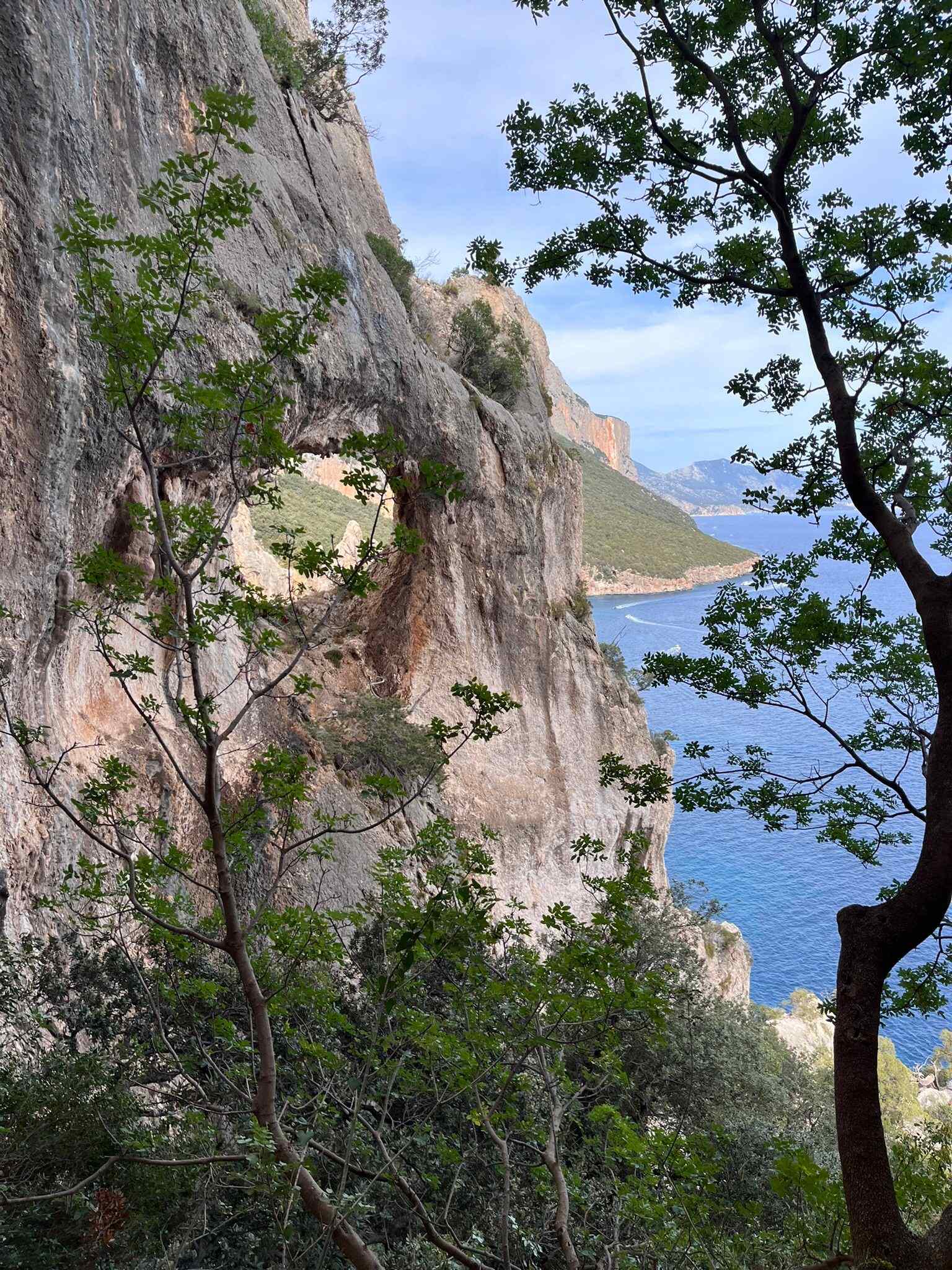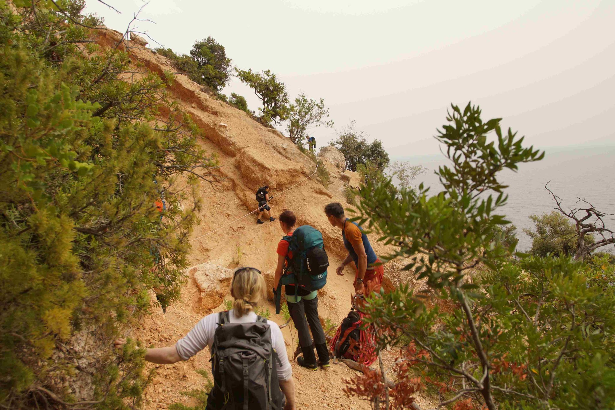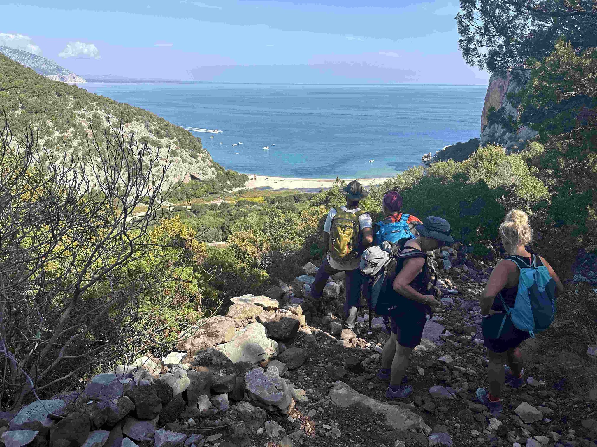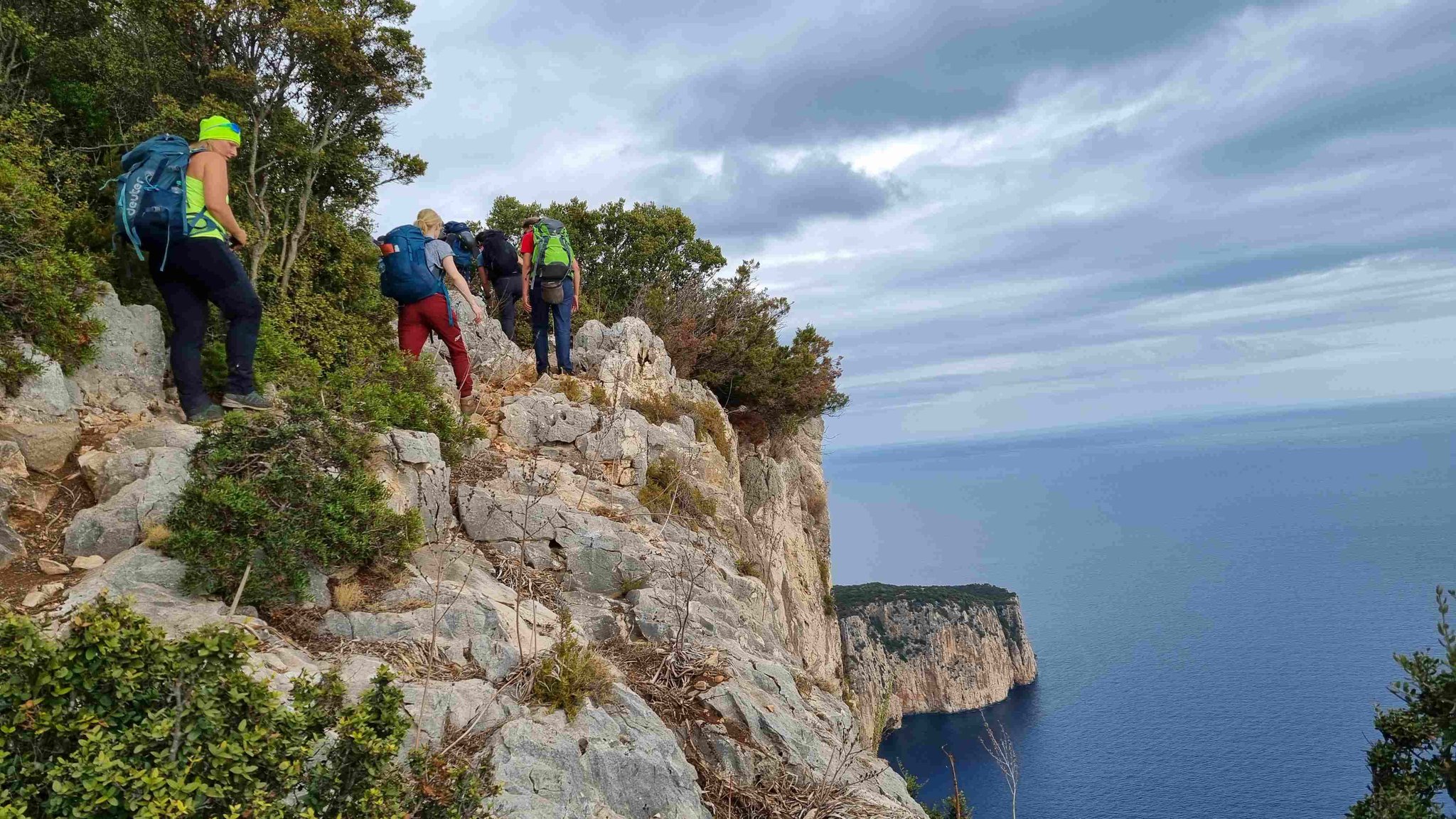 Die fünftägige Wanderung führt von Süden nach Norden, teilweise oberhalb und teilweise quer durch die Felswände zwischen Santa Maria Navarrese und Cala Sisine, wo es eigentlich keinen Platz für eine Trekkingroute gibt. Im mediterranen Karst erwartet einen eine farbenfrohe und duftende Kulturlandschaft. Abseilstellen, kurze Kletterpassagen sowie wegloses und raues Gelände erfordern Trittsicherheit und Schwindelfreiheit. Der Blick aus knapp 800 Metern Höhe auf das tiefblaue Meer bleibt unvergessen.