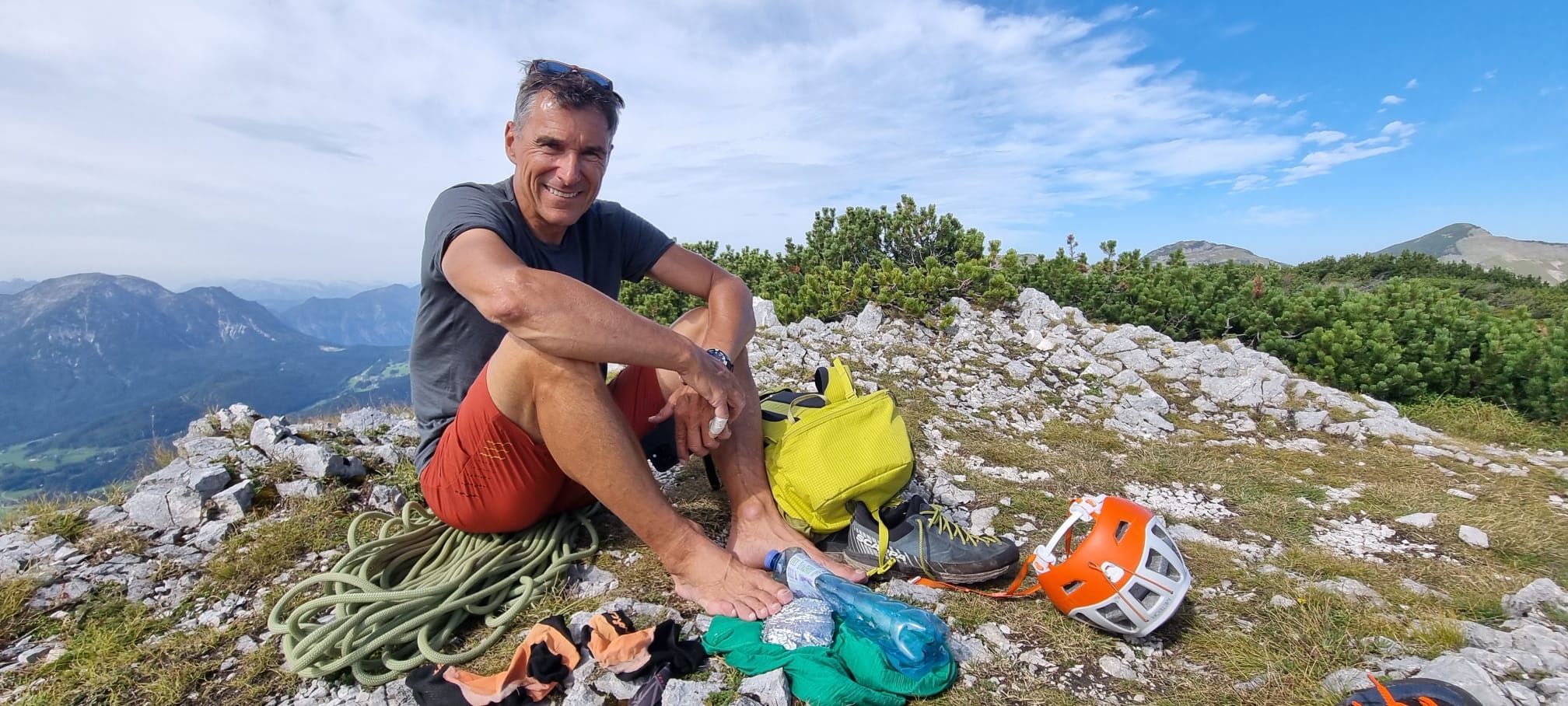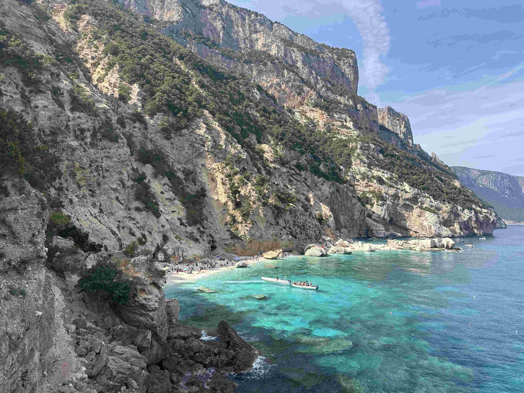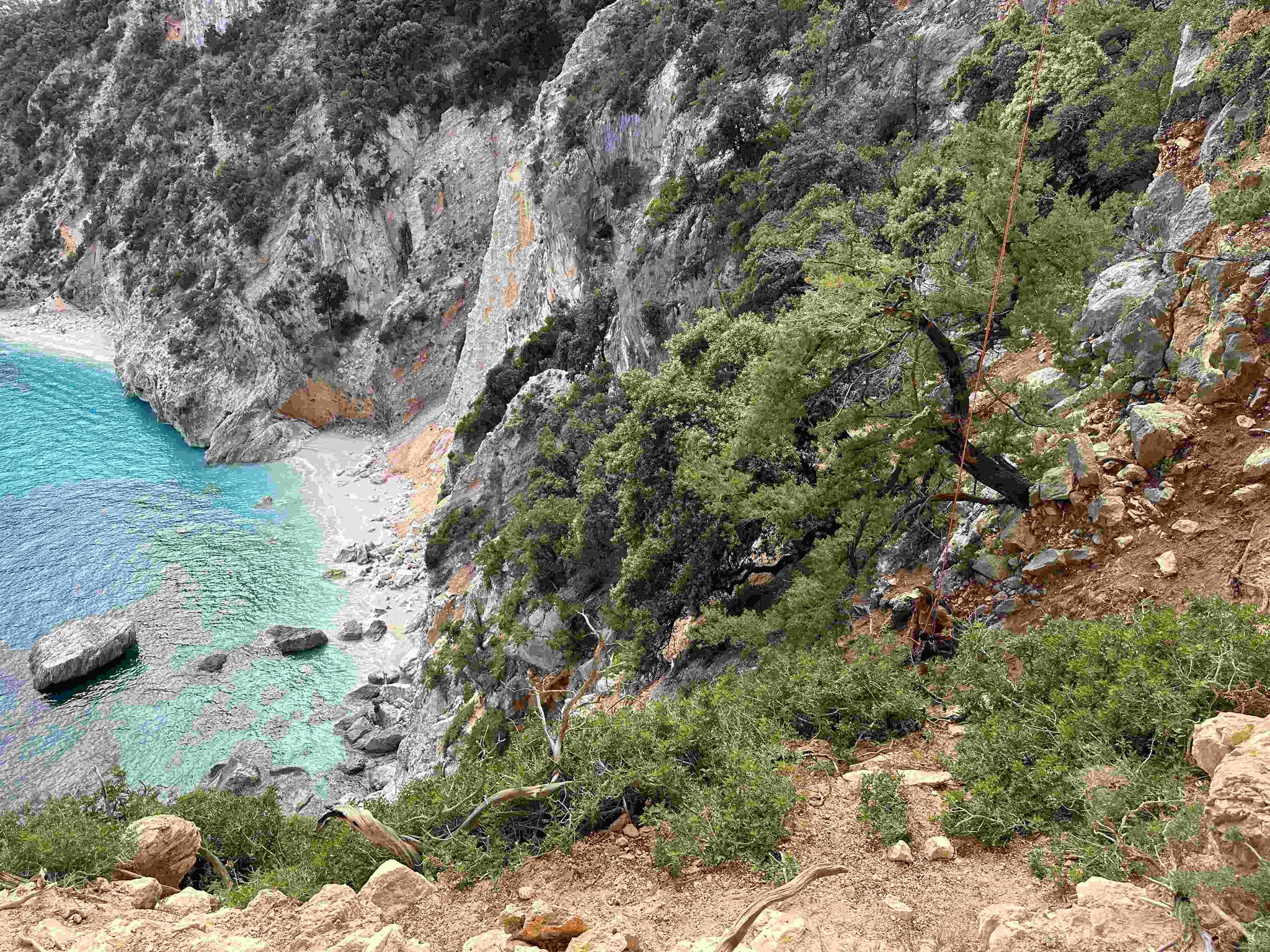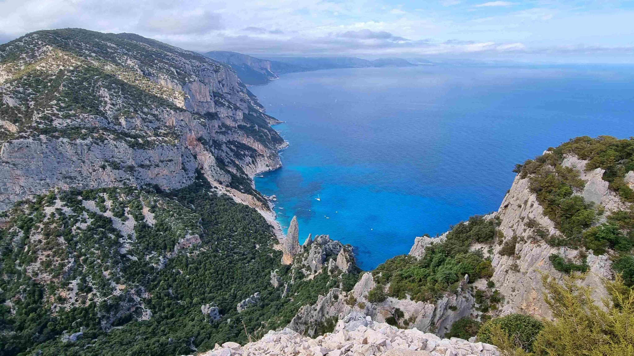Die fünftägige Wanderung führt von Süden nach Norden, teilweise oberhalb und teilweise quer durch die Felswände zwischen Santa Maria Navarrese und Cala Sisine, wo es eigentlich keinen Platz für eine Trekkingroute gibt. Im mediterranen Karst erwartet einen eine farbenfrohe und duftende Kulturlandschaft. Abseilstellen, kurze Kletterpassagen sowie wegloses und raues Gelände erfordern Trittsicherheit und Schwindelfreiheit. Der Blick aus knapp 800 Metern Höhe auf das tiefblaue Meer bleibt unvergessen.