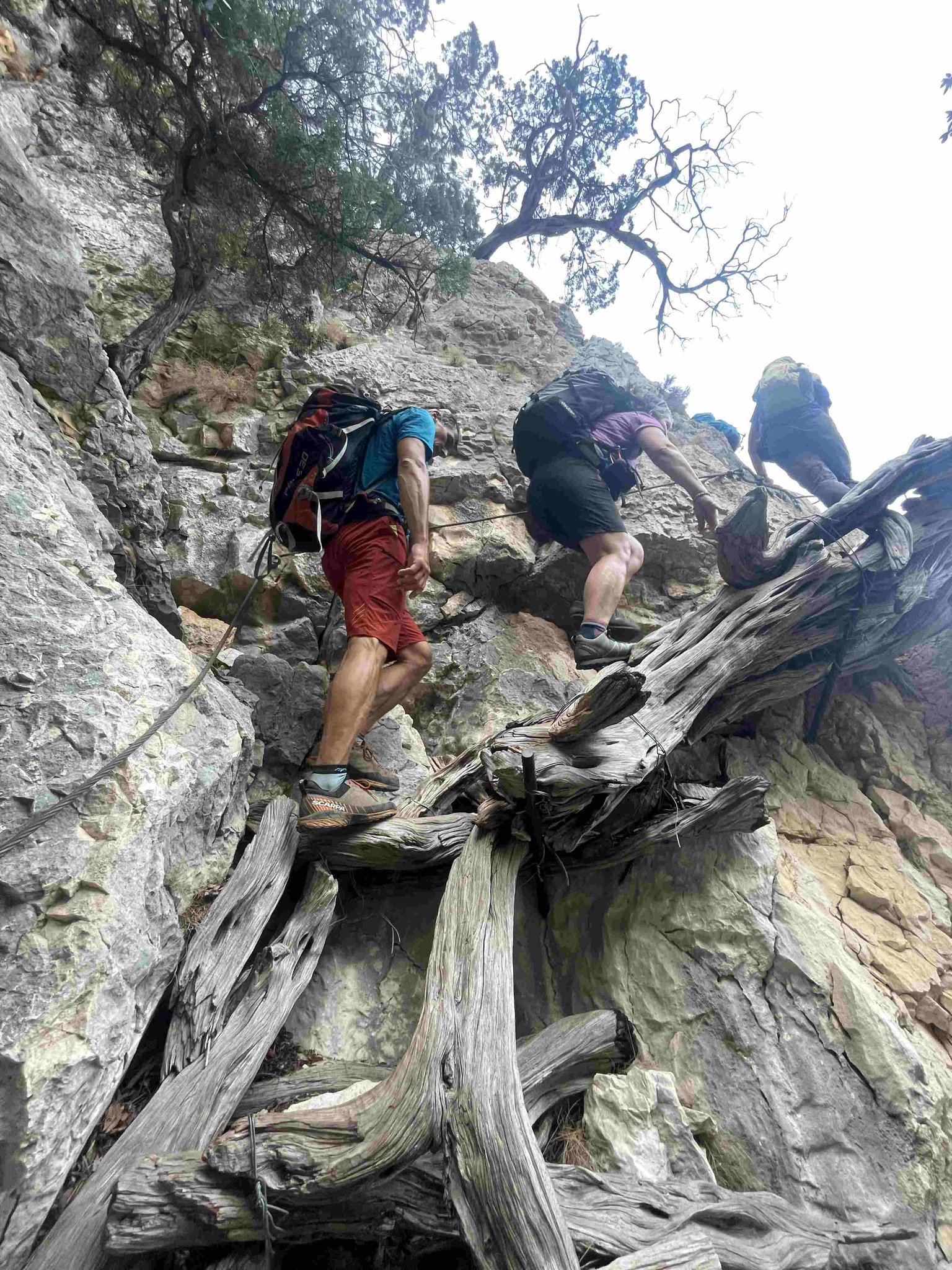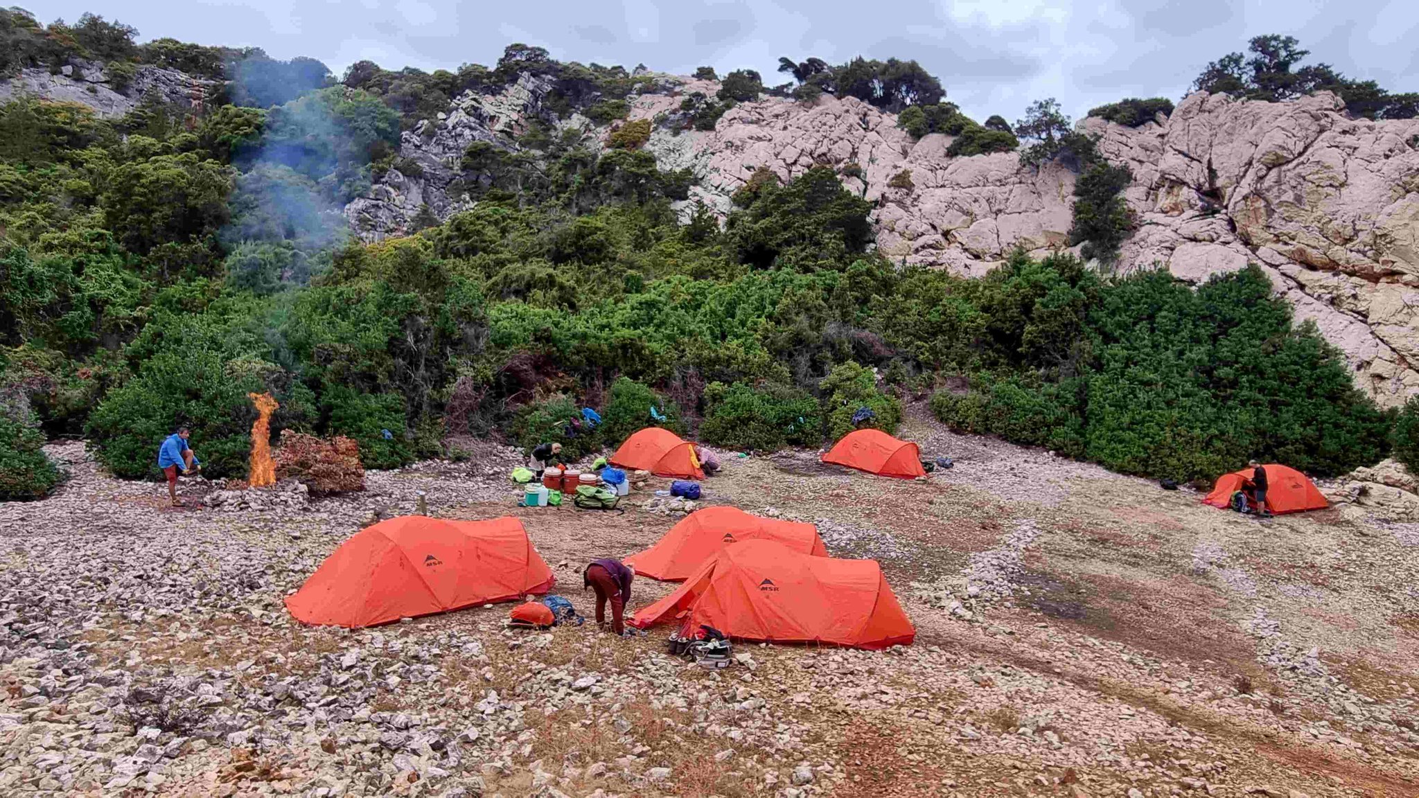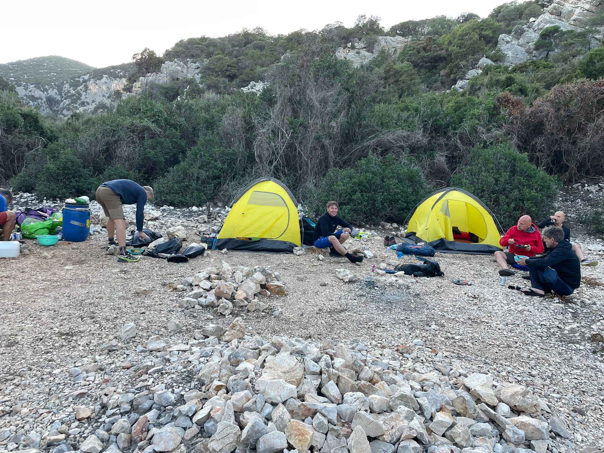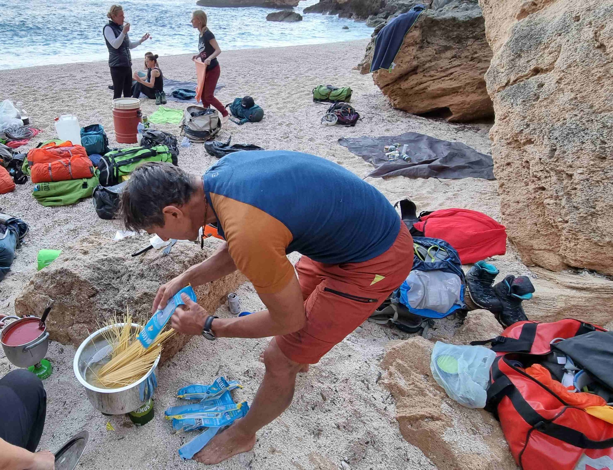 In den nächsten Tagen wandern wir entlang der Küste, mit wechselnden Anstiegen und Abstiegen, teilweise in weglosem Gelände auf ausgesetzten Felsbändern durch Schluchten und Höhlen. An manchen Passagen werden die Teilnehmer mit einem Seil abgelassen, Abseilkenntnisse sind nicht erforderlich. Zwischendurch laden einsame Badebuchten zu einem erfrischenden Bad im warmen Meer ein. Die Lagerplätze befinden sich in der Nähe von Buchten oder auf Campingplätzen mit Dusch- und Lademöglichkeiten für elektrische Geräte. Der genaue Ablauf wird vor Ort je nach Gegebenheiten festgelegt.
