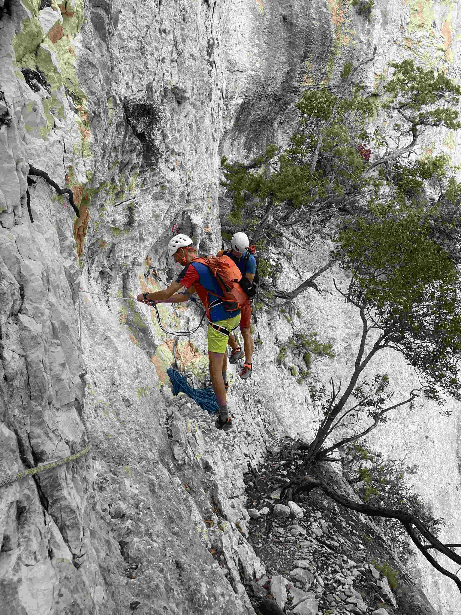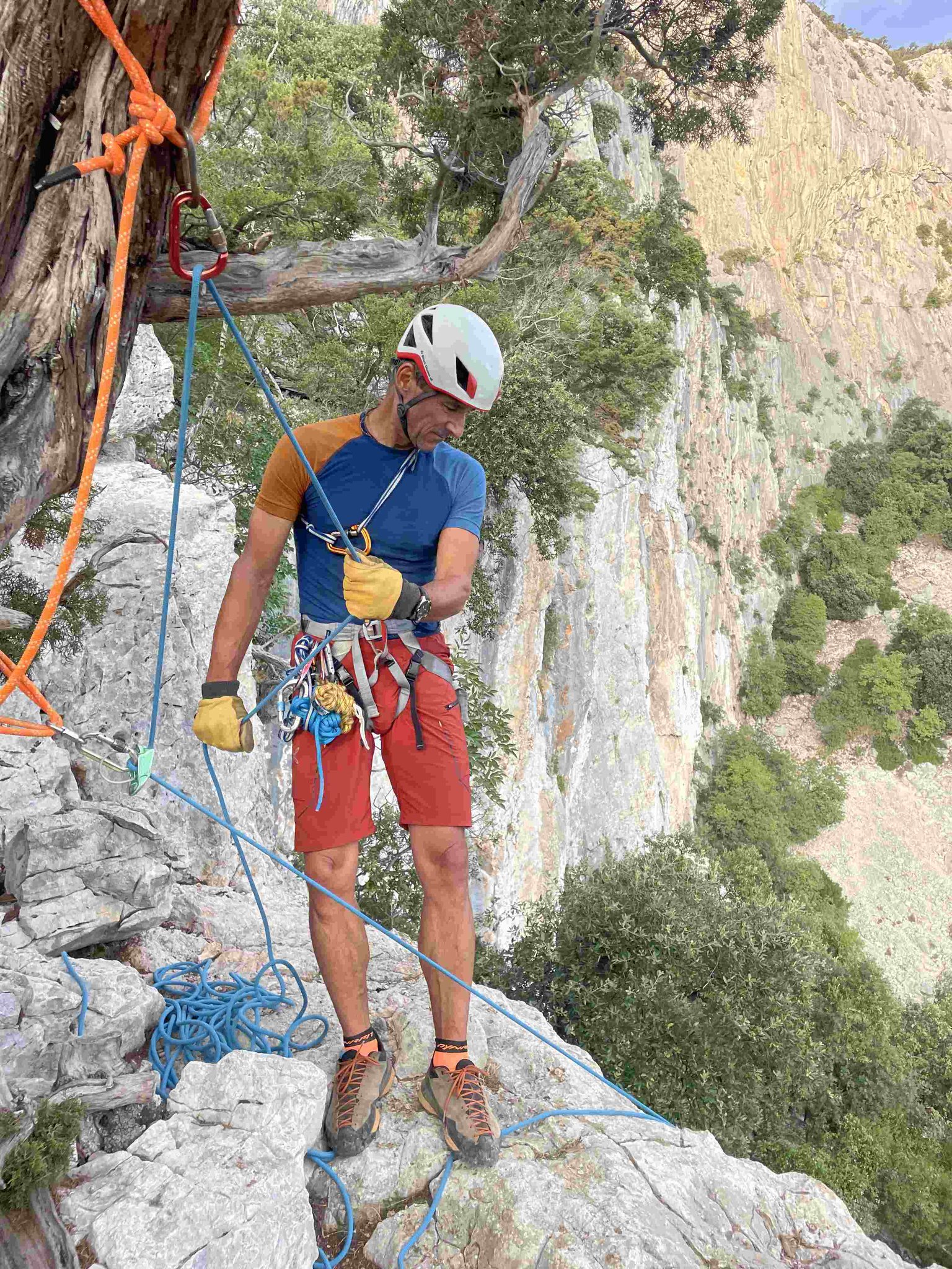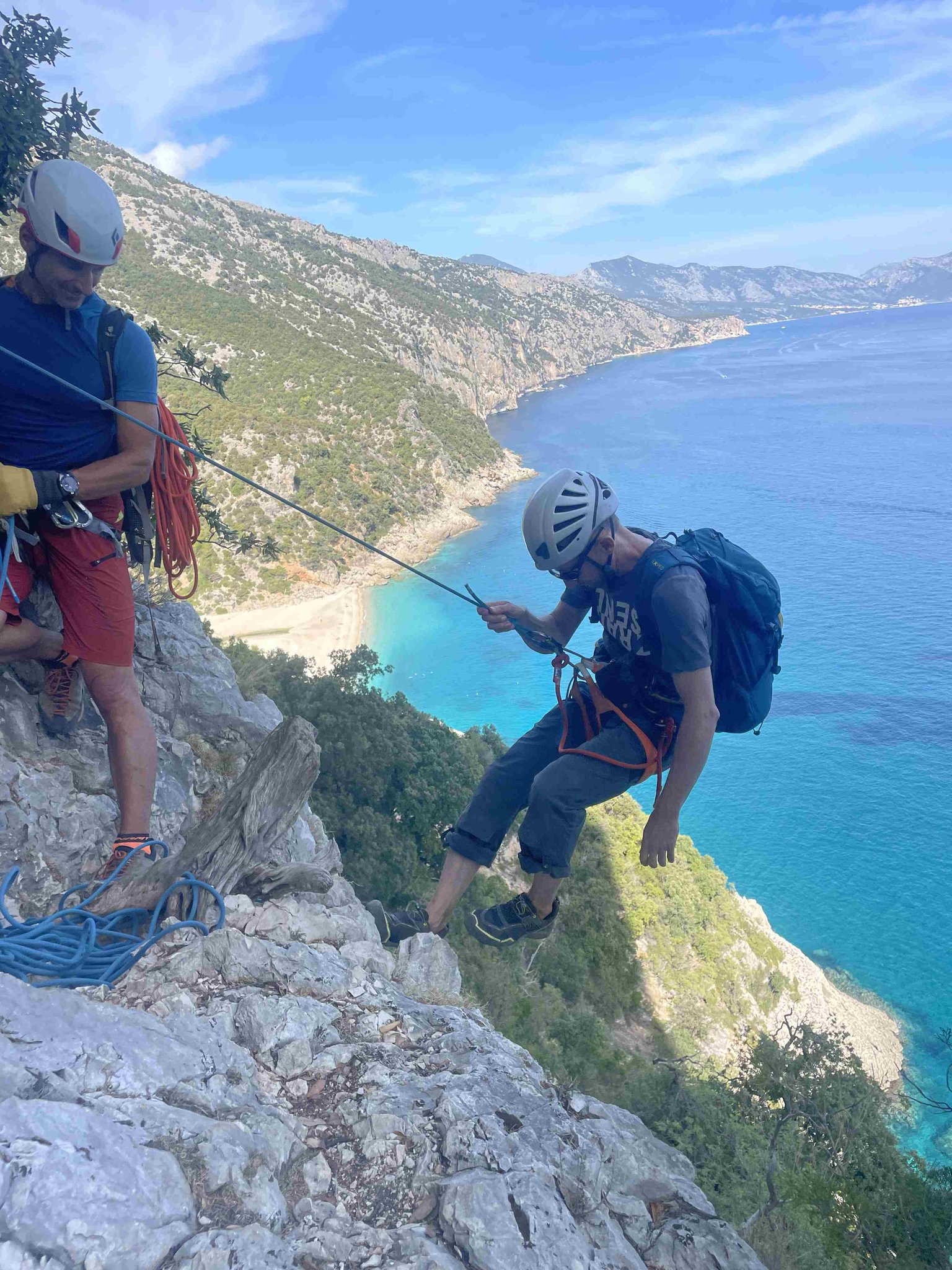 Die letzte Etappe führt uns durch kurze Abseilstellen zur Cala Sisine. Nach einem letzten Bad im Meer fahren wir zurück nach Santa Maria di Navarrese. Von dort erfolgt der Transfer zum Flughafen Olbia, den wir gegen 18:00 Uhr erreichen.