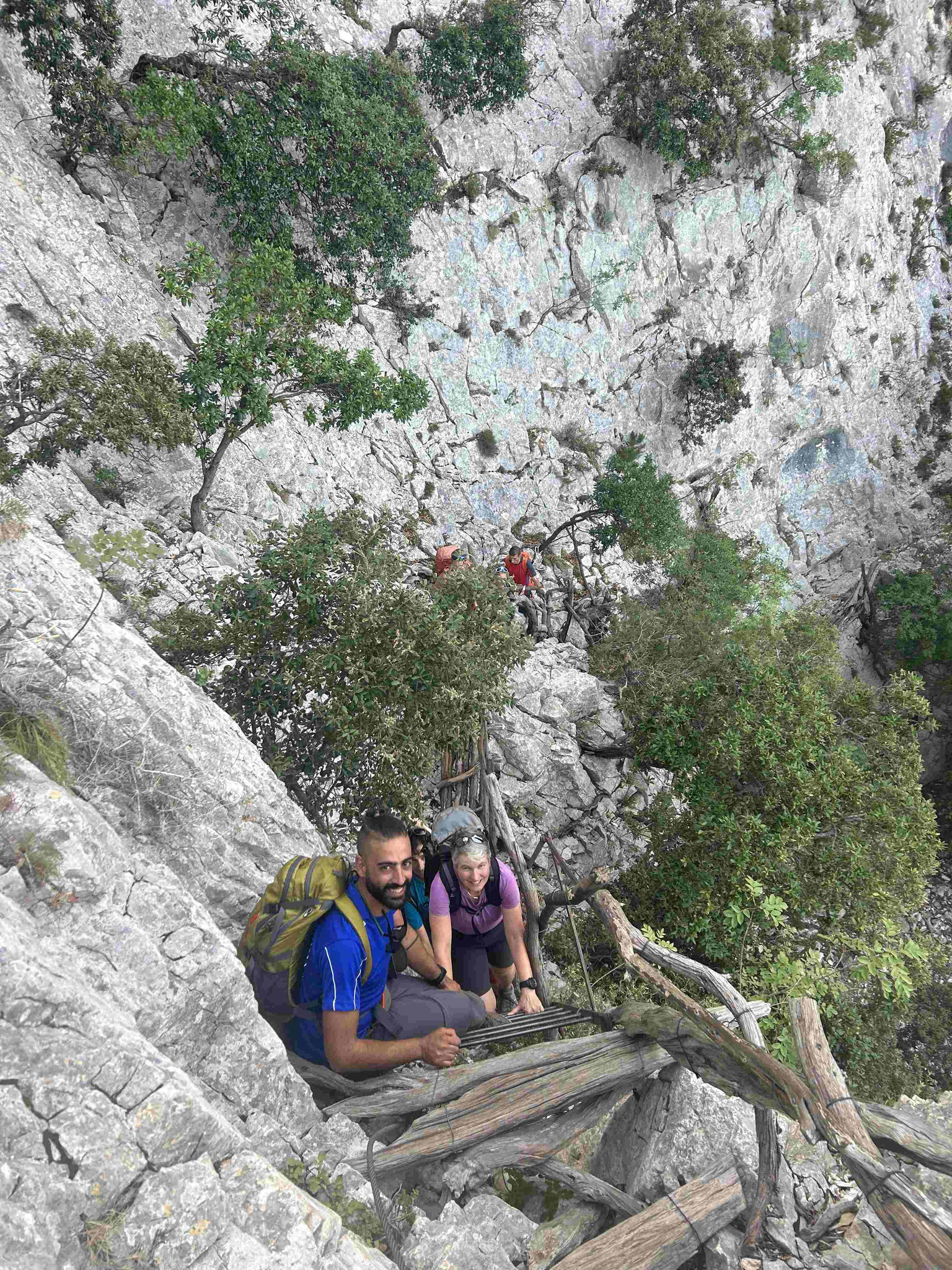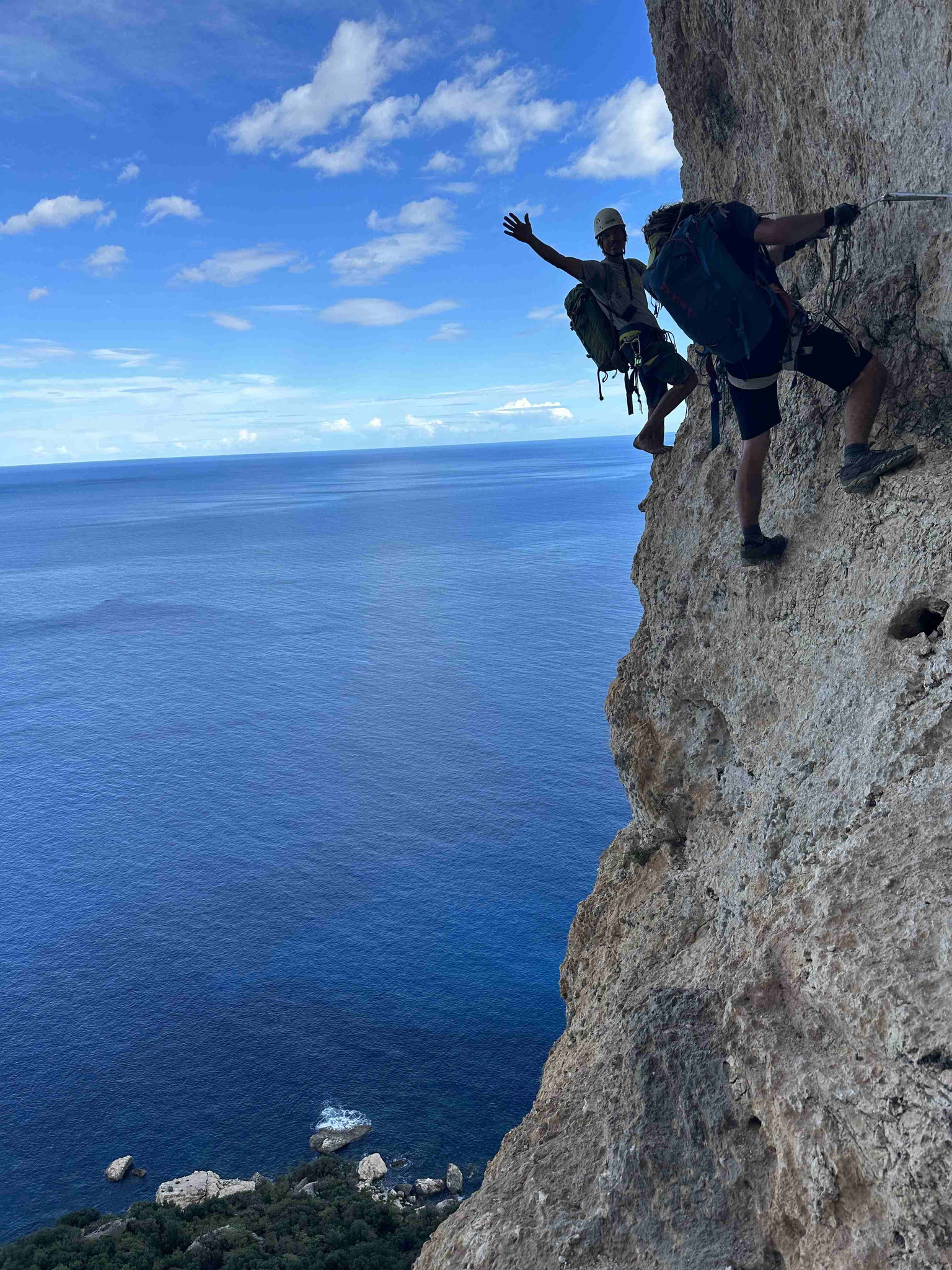 Im Anschluss erfolgte noch eine mehrtägige Erkundungstour eines "Selvaggio Blu extrem", für den DAV Summit Club. Die neue Tour klingt vielversprechend- 100 Meter abseilen, Kriechbänder, steile Wände .....