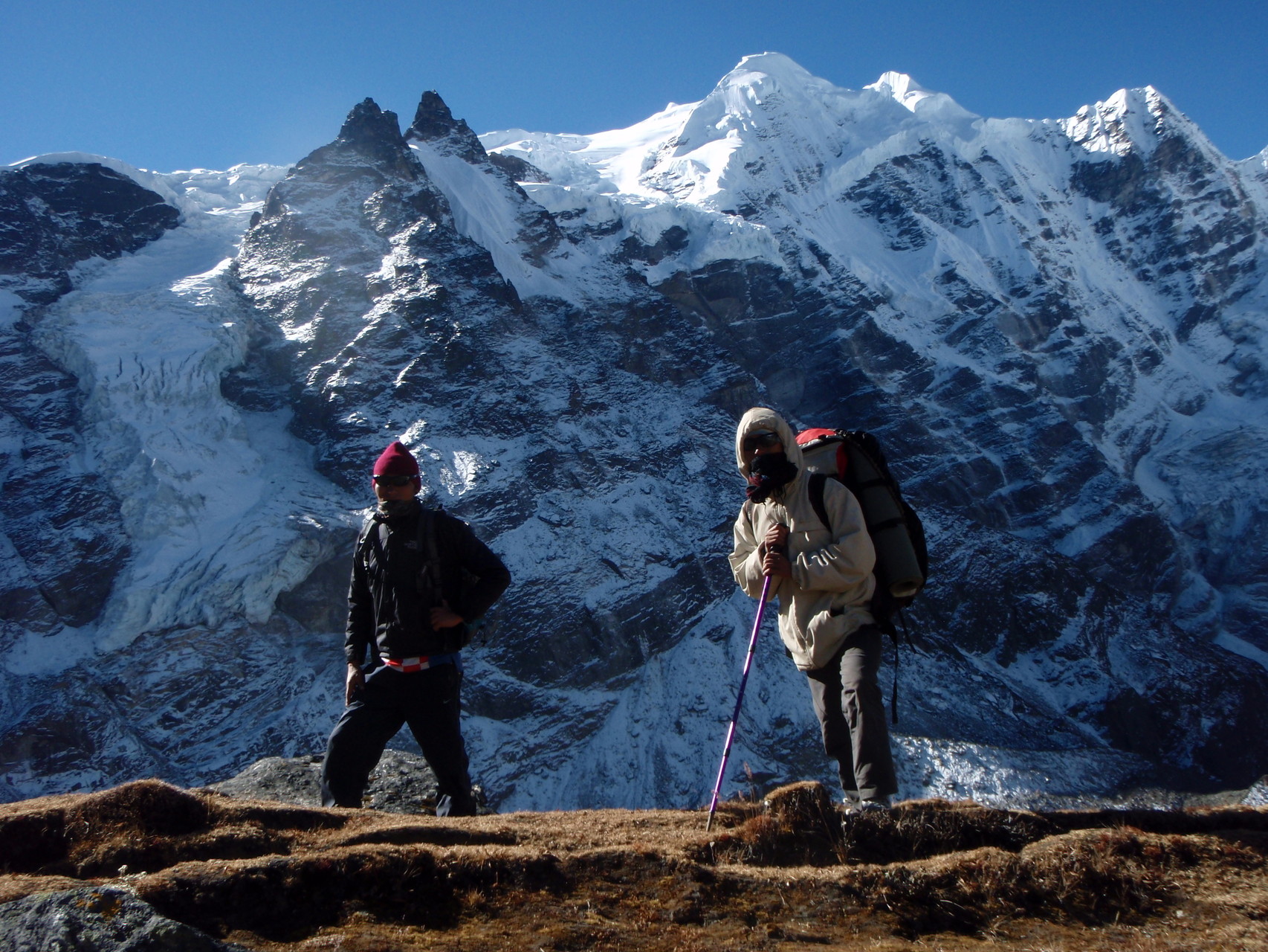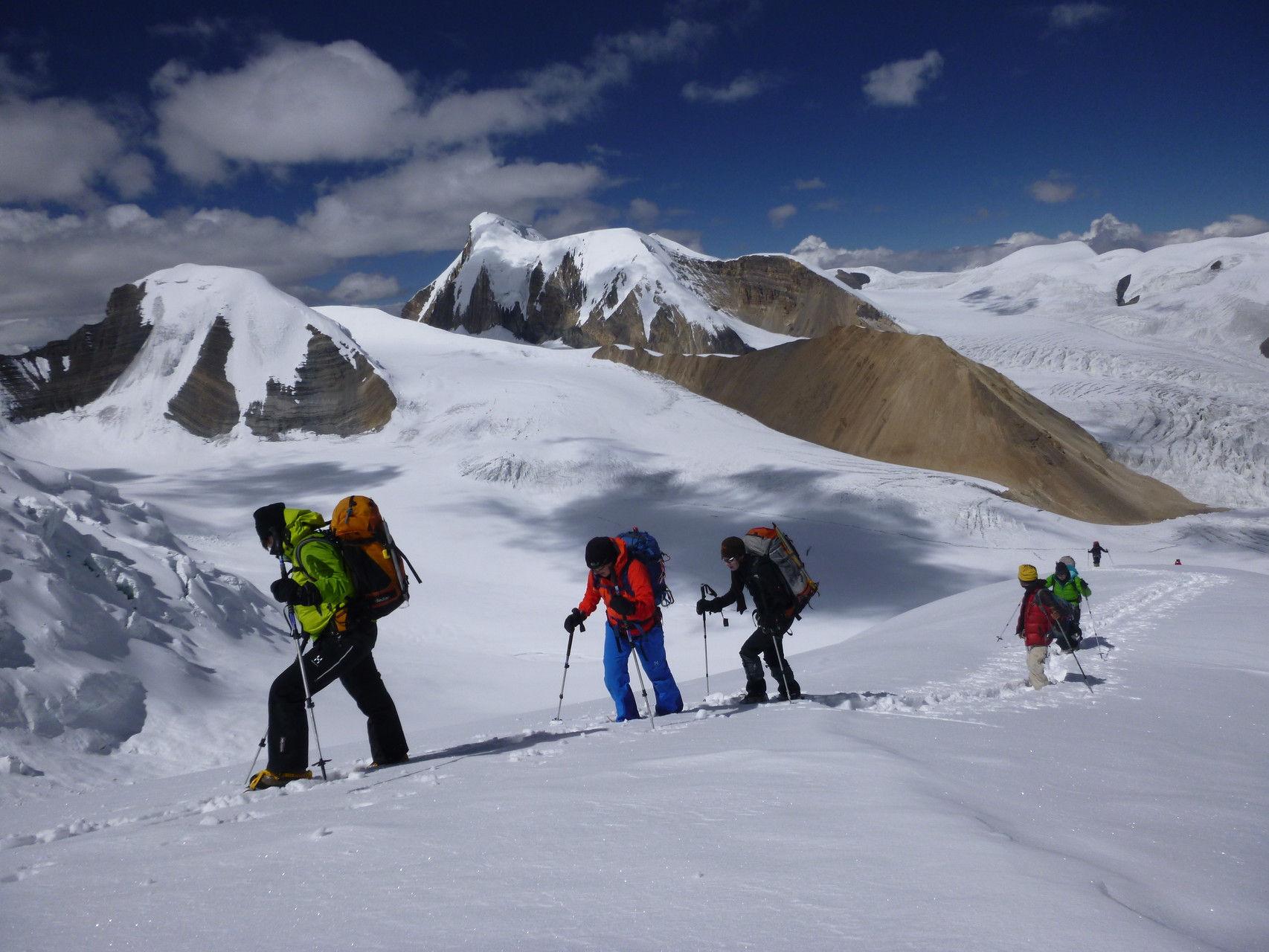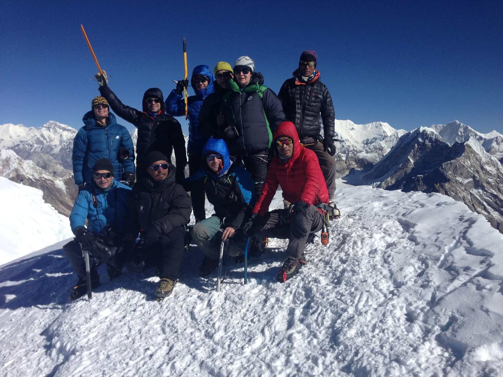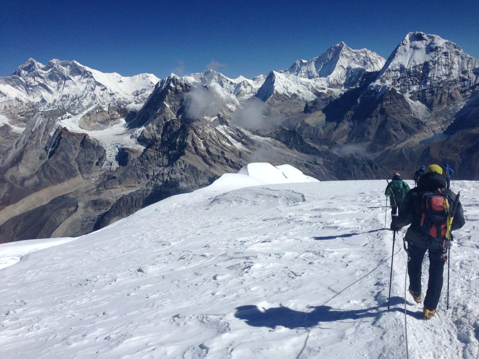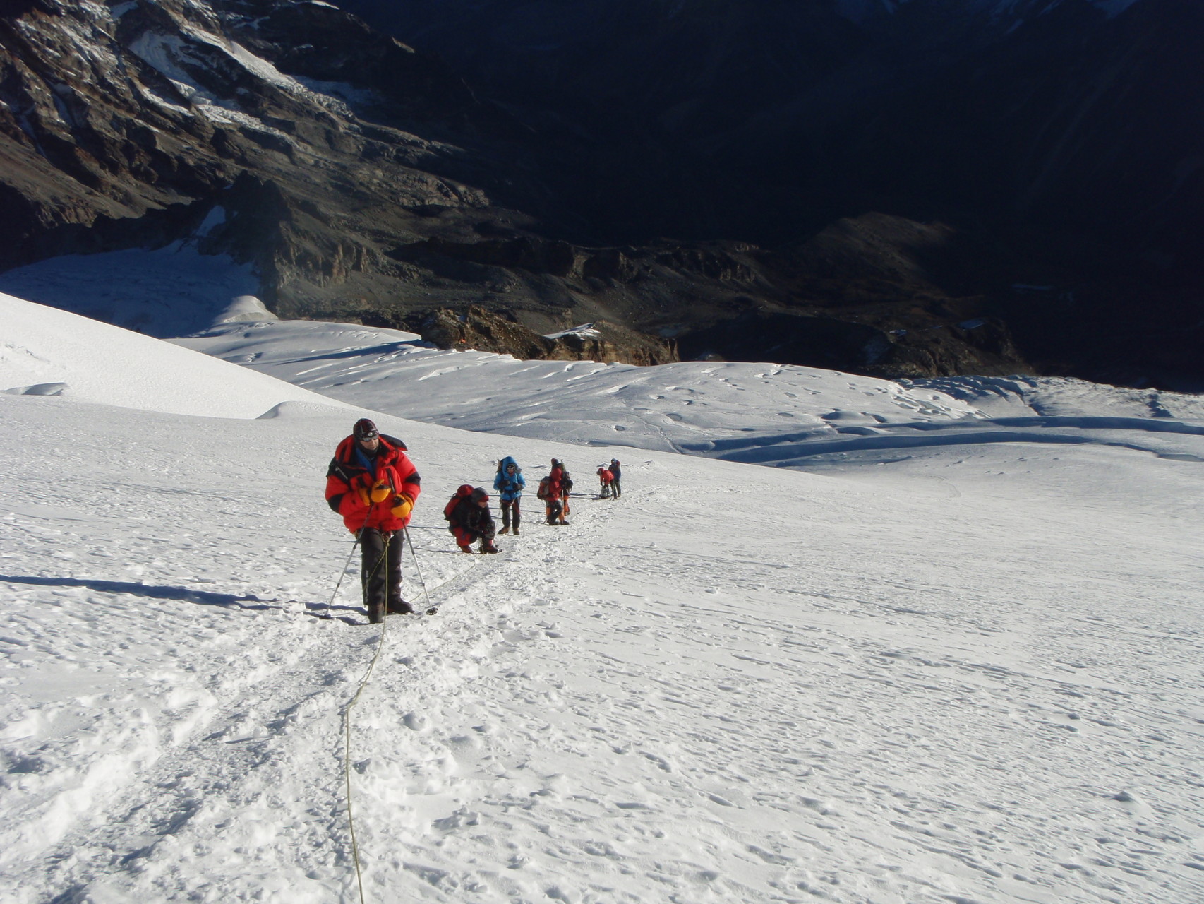 Während die Heimat der Sherpas, das Solo Khumbu, durch seine gute Erschlossenheit von Trekkern oft besucht wird, ist das Hinku-Hongu-Gebiet rund um den Mera Peak und den Kusum Kanguru noch sehr ursprünglich geblieben. Wenige Gruppen nehmen jährlich den teilweise beschwerlichen Anmarsch zu den Gipfeln des oberen Hinku-Tales auf sich. Wer aber einmal diese wilde Abgeschiedenheit kennengelernt hat, wird lange davon zehren können. Nach dem Überqueren des 4.600 m hohe Zatrawa La Pass ging es bis an das Ende des Hinku Tal zum Gipfel des Mera Peak Central, einem Aussichtspunkt mit spektakulärer Aussicht auf fünf Achttausender: den Cho Oyu im Nordwesten, Everest und Lhotse im Norden und Makalu sowie Kangchendzönga im Nordosten.