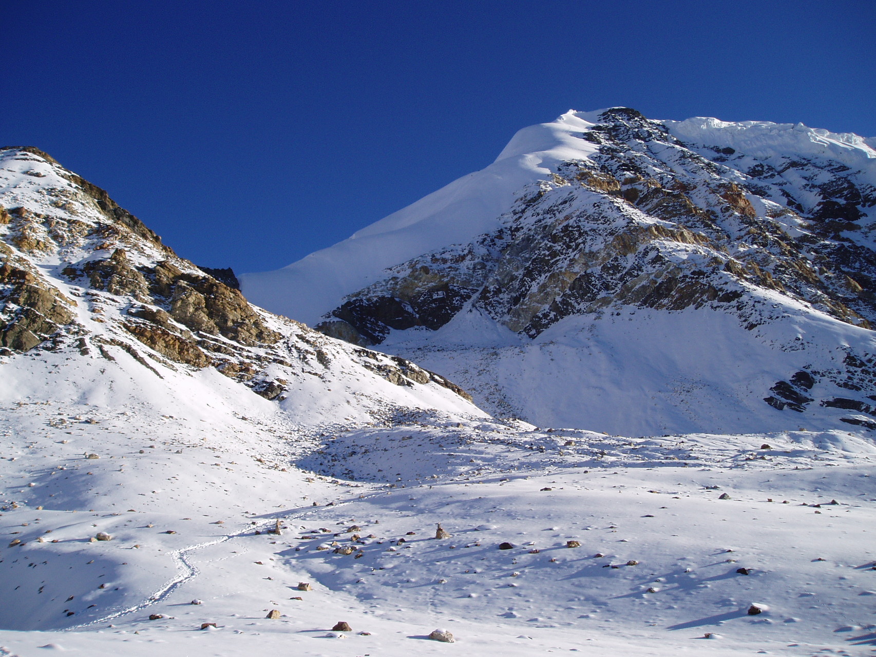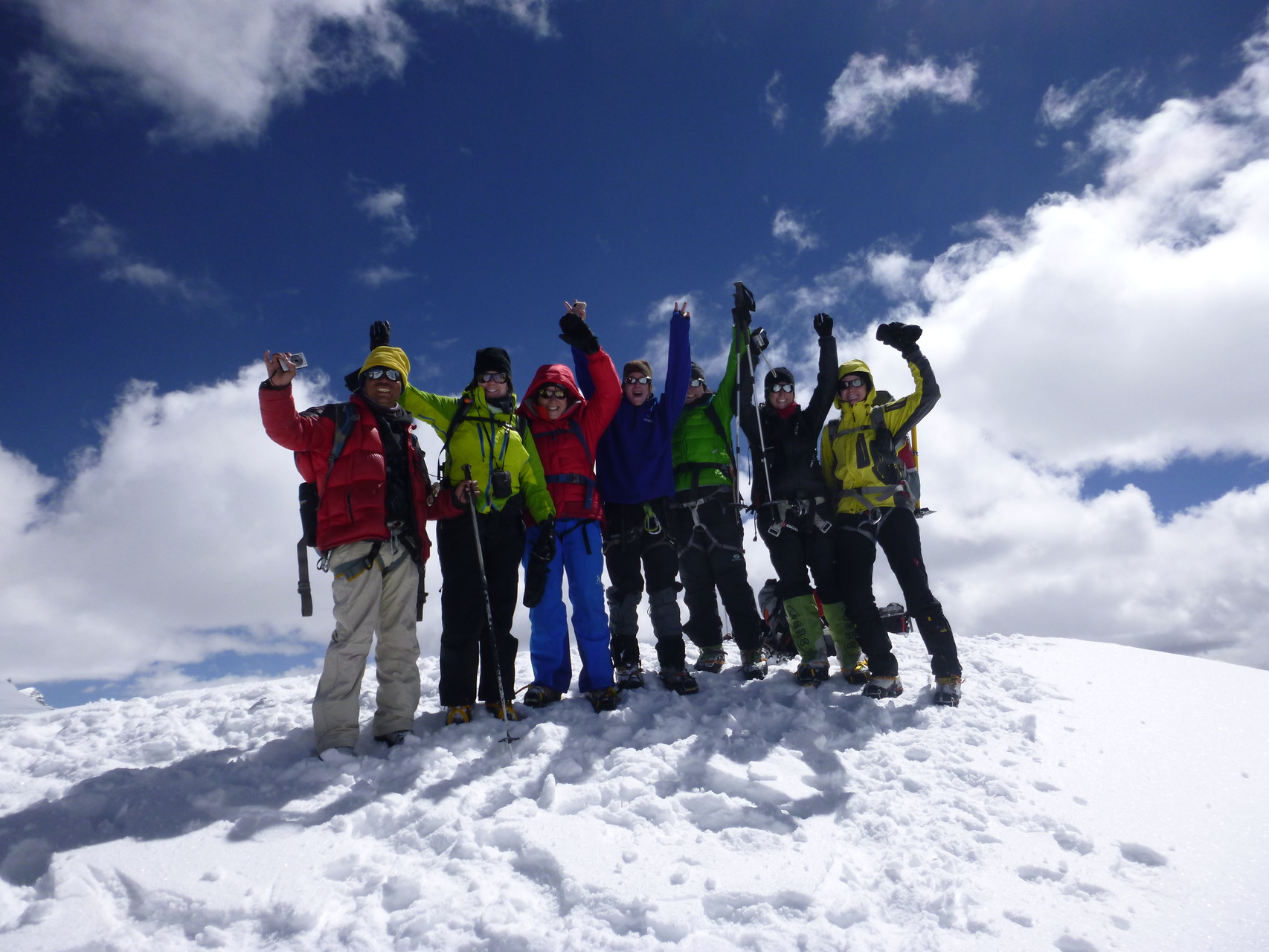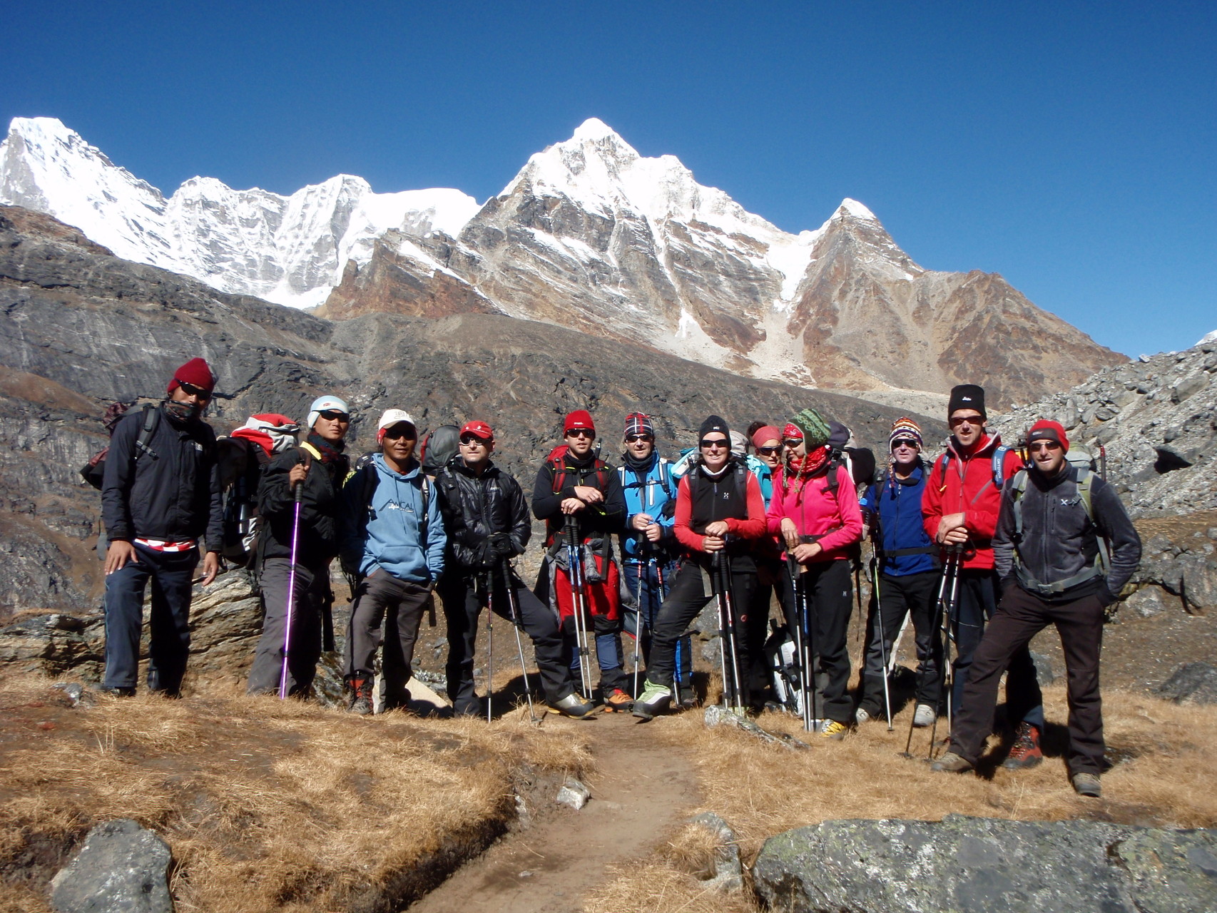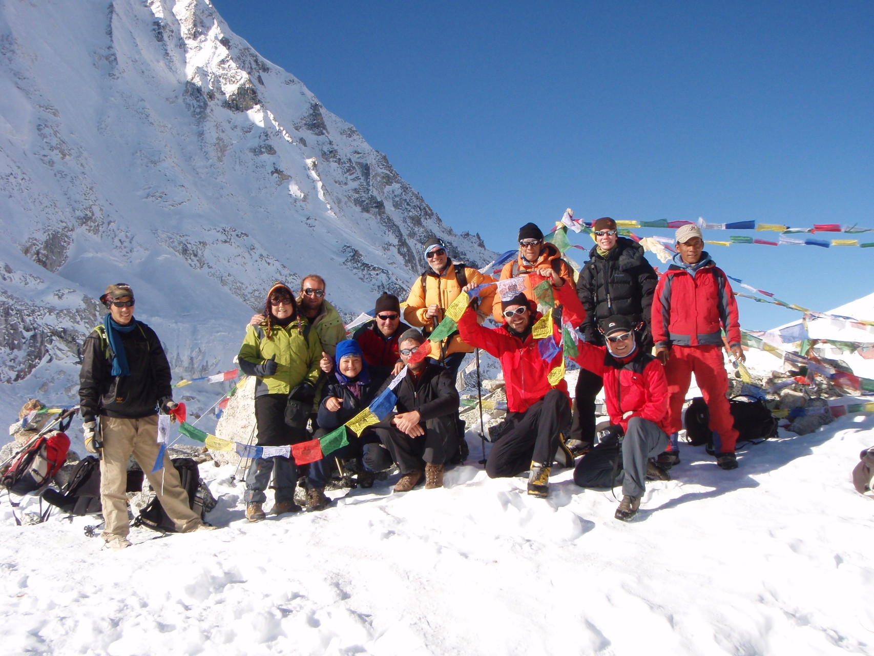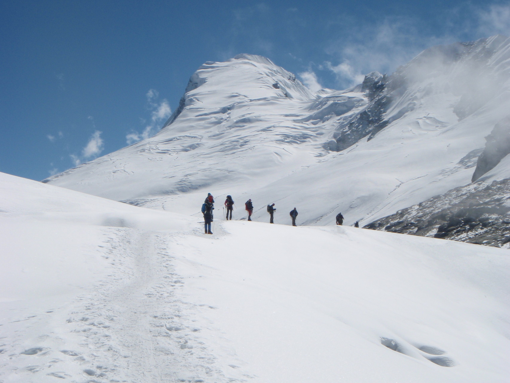 Während die Heimat der Sherpas, das Solo Khumbu, durch seine gute Erschlossenheit von Trekkern oft besucht wird, ist das Hinku-Hongu-Gebiet rund um den Mera Peak und den Kusum Kanguru noch sehr ursprünglich geblieben. Wenige Gruppen nehmen jährlich den teilweise beschwerlichen Anmarsch zu den Gipfeln des oberen Hinku-Tales auf sich. Wer aber einmal diese wilde Abgeschiedenheit kennengelernt hat, wird lange davon zehren können. Nach dem Überqueren des 4.600 m hohe Zatrawa La Pass ging es bis an das Ende des Hinku Tal zum Gipfel des Mera Peak Central, einem Aussichtspunkt mit spektakulärer Aussicht auf fünf Achttausender: den Cho Oyu im Nordwesten, Everest und Lhotse im Norden und Makalu sowie Kangchendzönga im Nordosten.