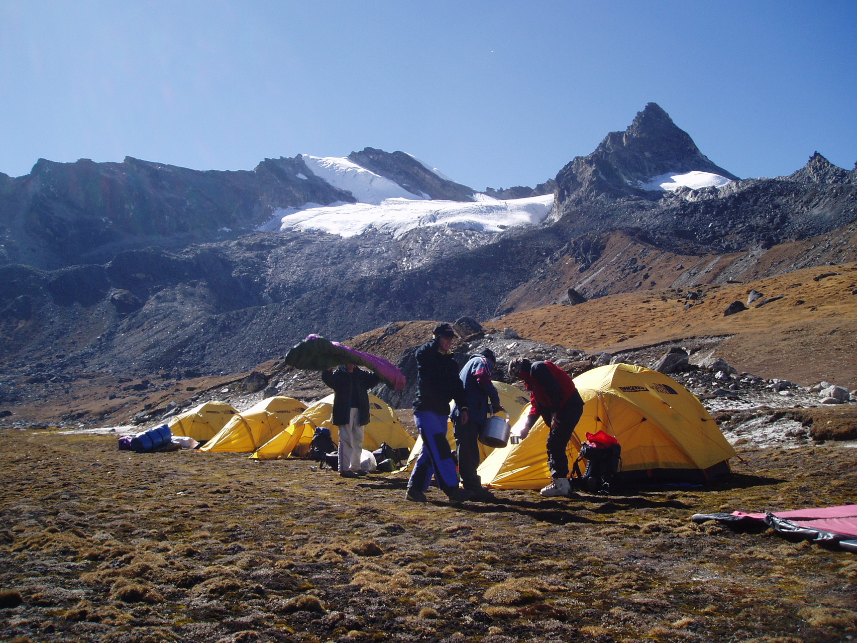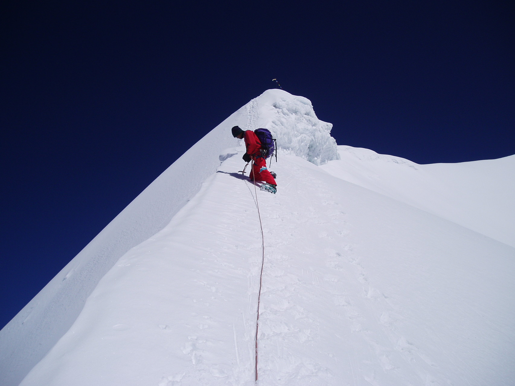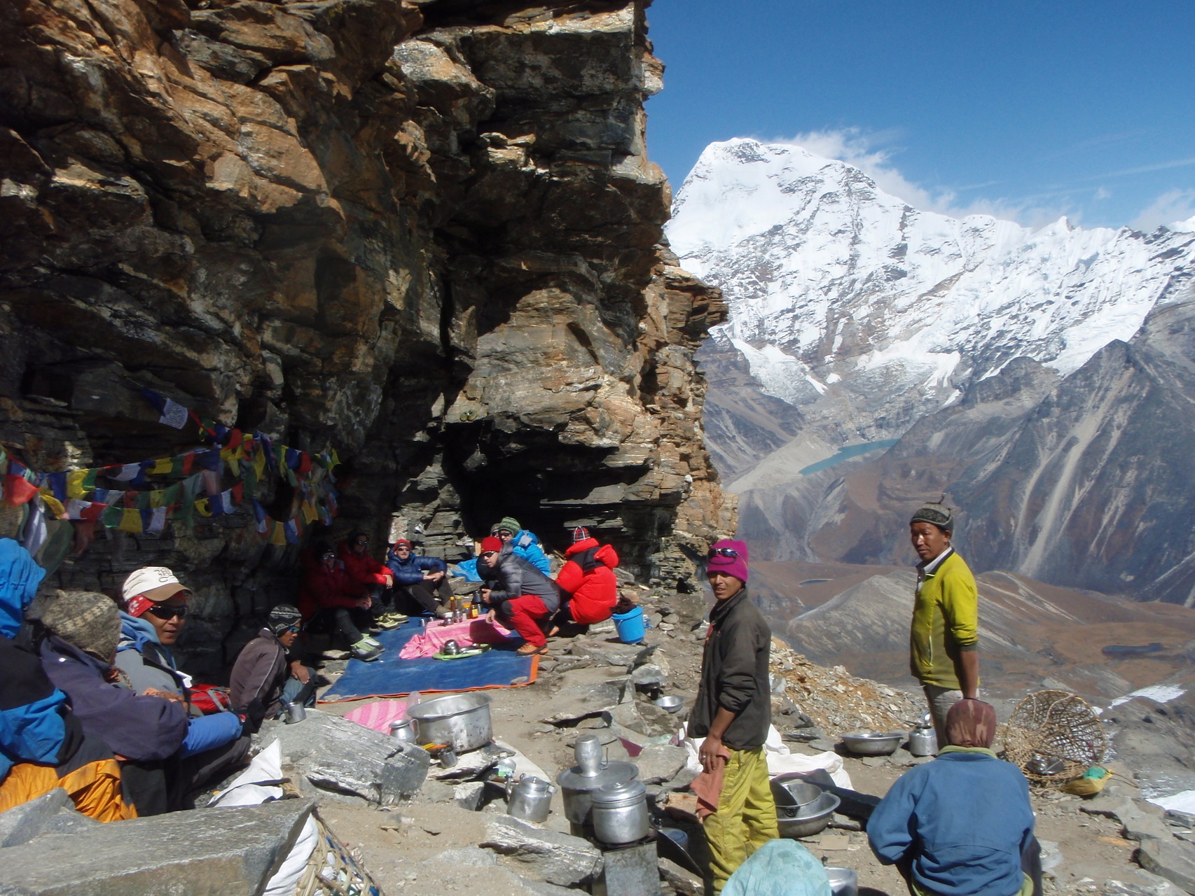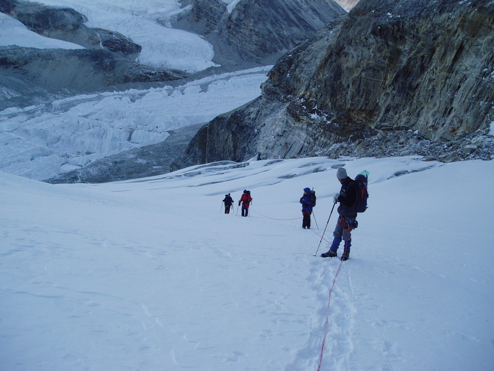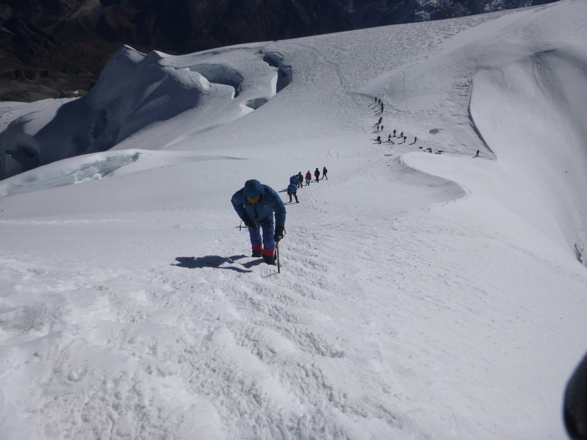 Während die Heimat der Sherpas, das Solo Khumbu, durch seine gute Erschlossenheit von Trekkern oft besucht wird, ist das Hinku-Hongu-Gebiet rund um den Mera Peak und den Kusum Kanguru noch sehr ursprünglich geblieben. Wenige Gruppen nehmen jährlich den teilweise beschwerlichen Anmarsch zu den Gipfeln des oberen Hinku-Tales auf sich. Wer aber einmal diese wilde Abgeschiedenheit kennengelernt hat, wird lange davon zehren können. Nach dem Überqueren des 4.600 m hohe Zatrawa La Pass ging es bis an das Ende des Hinku Tal zum Gipfel des Mera Peak Central, einem Aussichtspunkt mit spektakulärer Aussicht auf fünf Achttausender: den Cho Oyu im Nordwesten, Everest und Lhotse im Norden und Makalu sowie Kangchendzönga im Nordosten.
