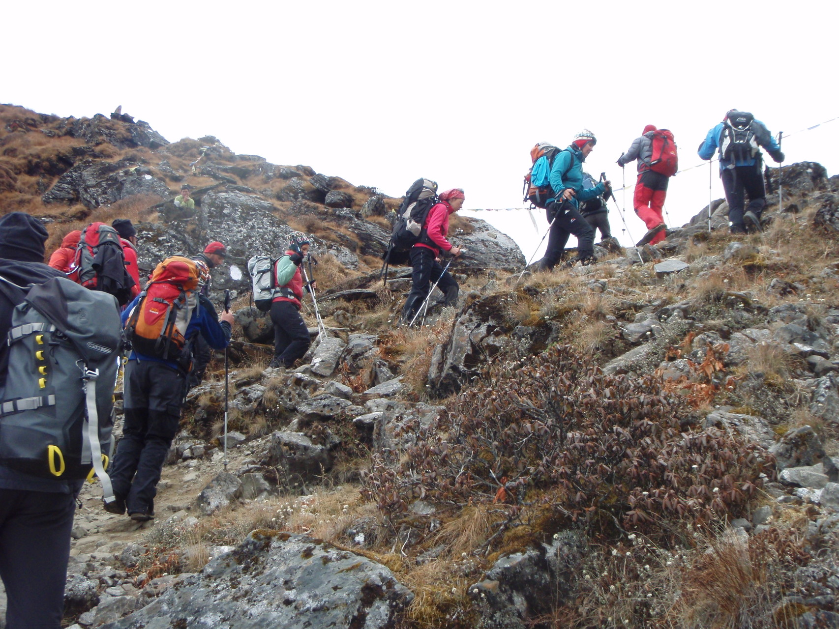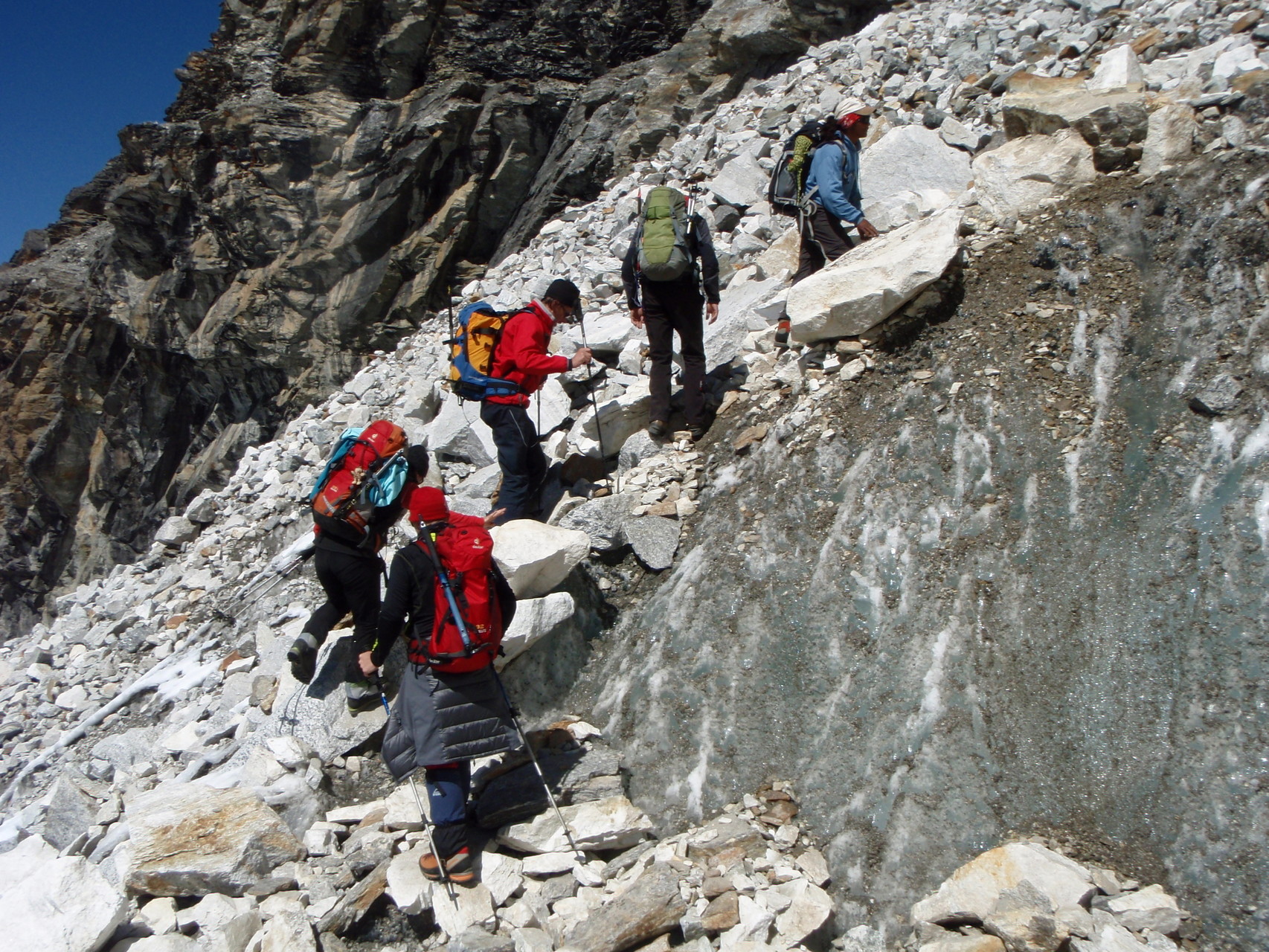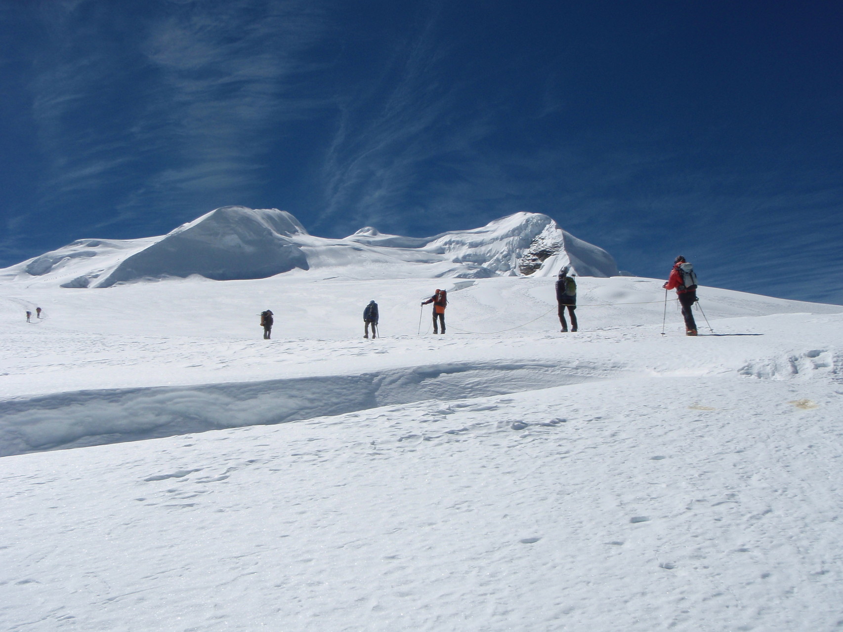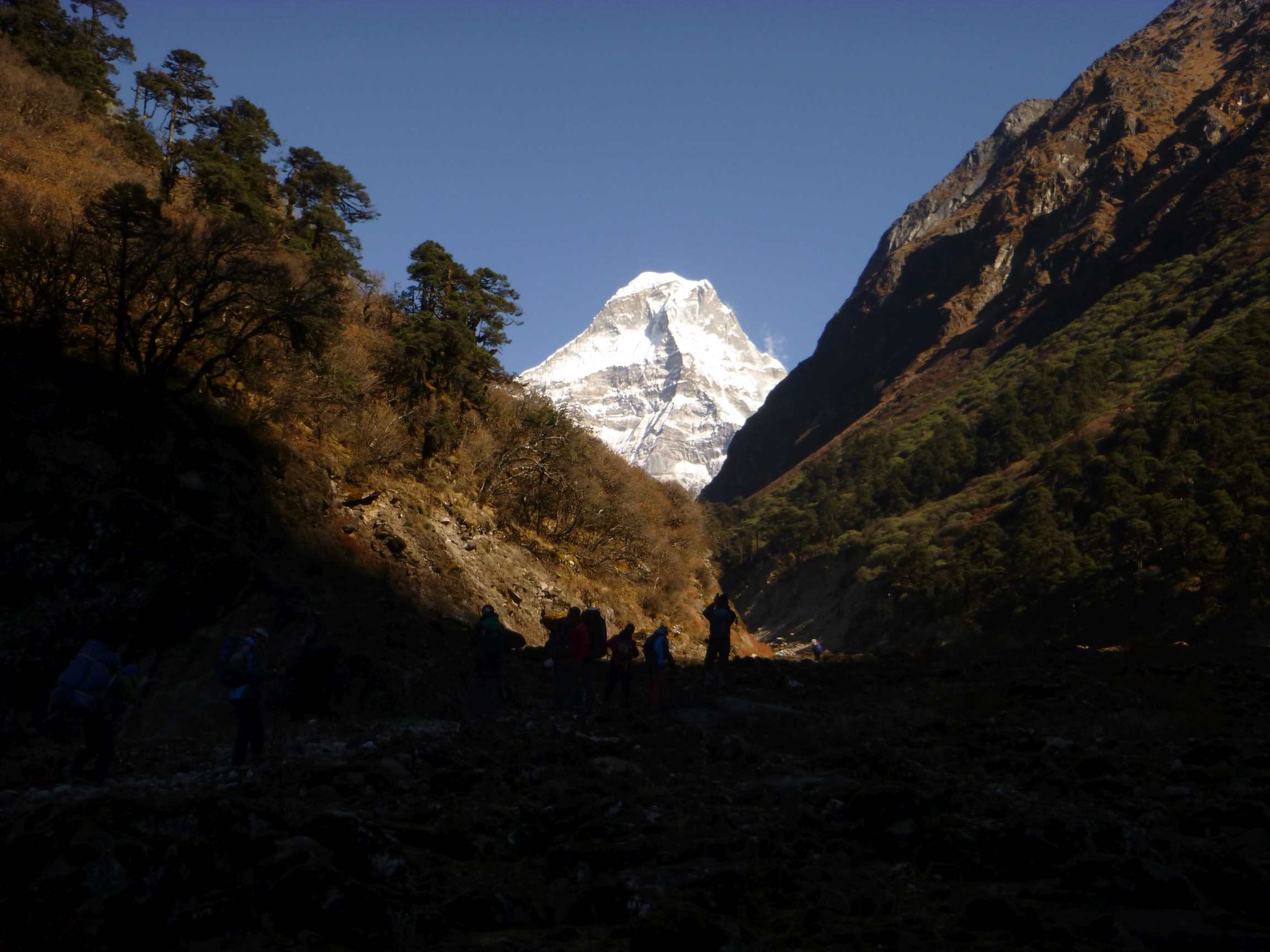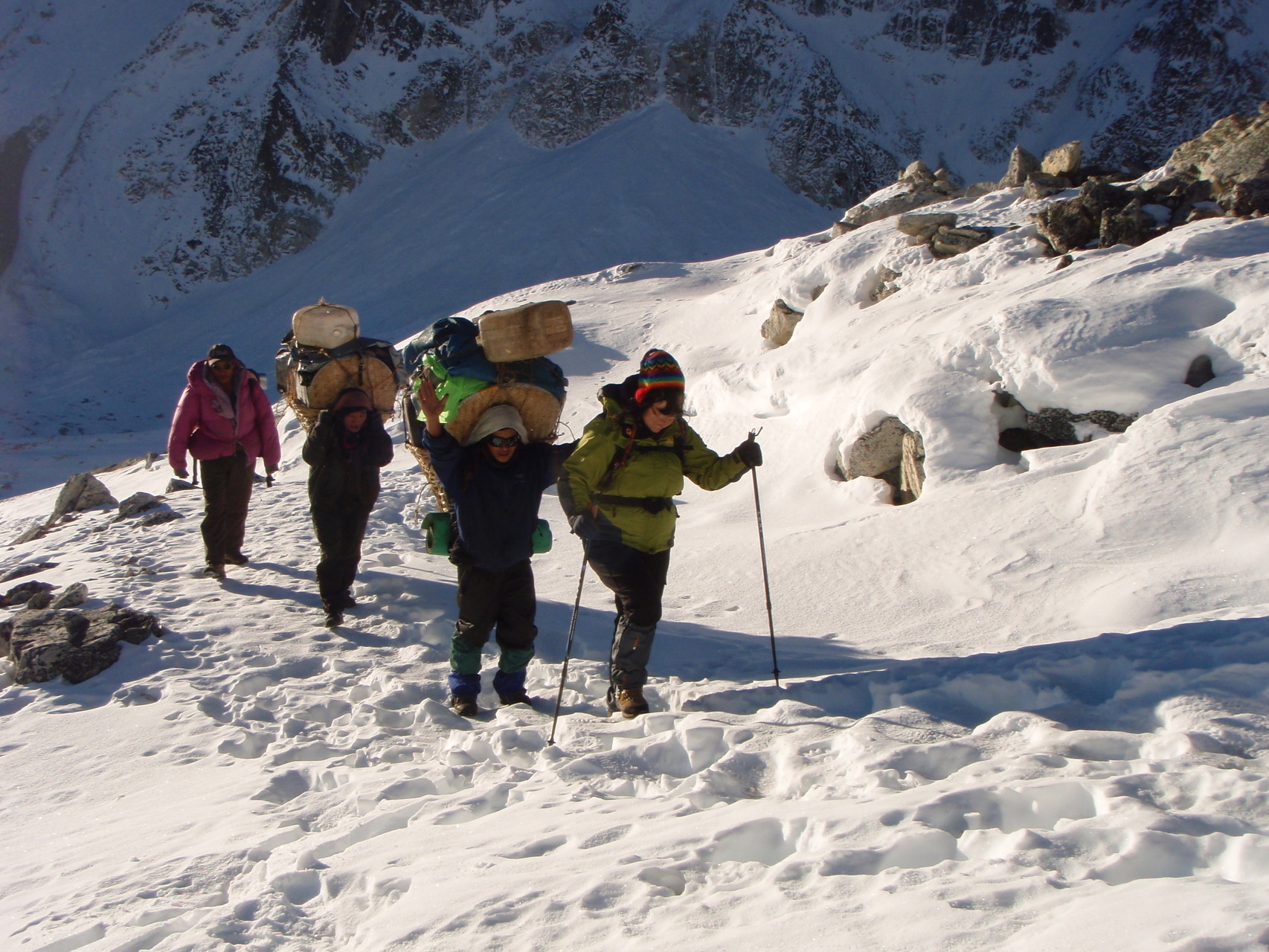Während die Heimat der Sherpas, das Solo Khumbu, durch seine gute Erschlossenheit von Trekkern oft besucht wird, ist das Hinku-Hongu-Gebiet rund um den Mera Peak und den Kusum Kanguru noch sehr ursprünglich geblieben. Wenige Gruppen nehmen jährlich den teilweise beschwerlichen Anmarsch zu den Gipfeln des oberen Hinku-Tales auf sich. Wer aber einmal diese wilde Abgeschiedenheit kennengelernt hat, wird lange davon zehren können. Nach dem Überqueren des 4.600 m hohe Zatrawa La Pass ging es bis an das Ende des Hinku Tal zum Gipfel des Mera Peak Central, einem Aussichtspunkt mit spektakulärer Aussicht auf fünf Achttausender: den Cho Oyu im Nordwesten, Everest und Lhotse im Norden und Makalu sowie Kangchendzönga im Nordosten.