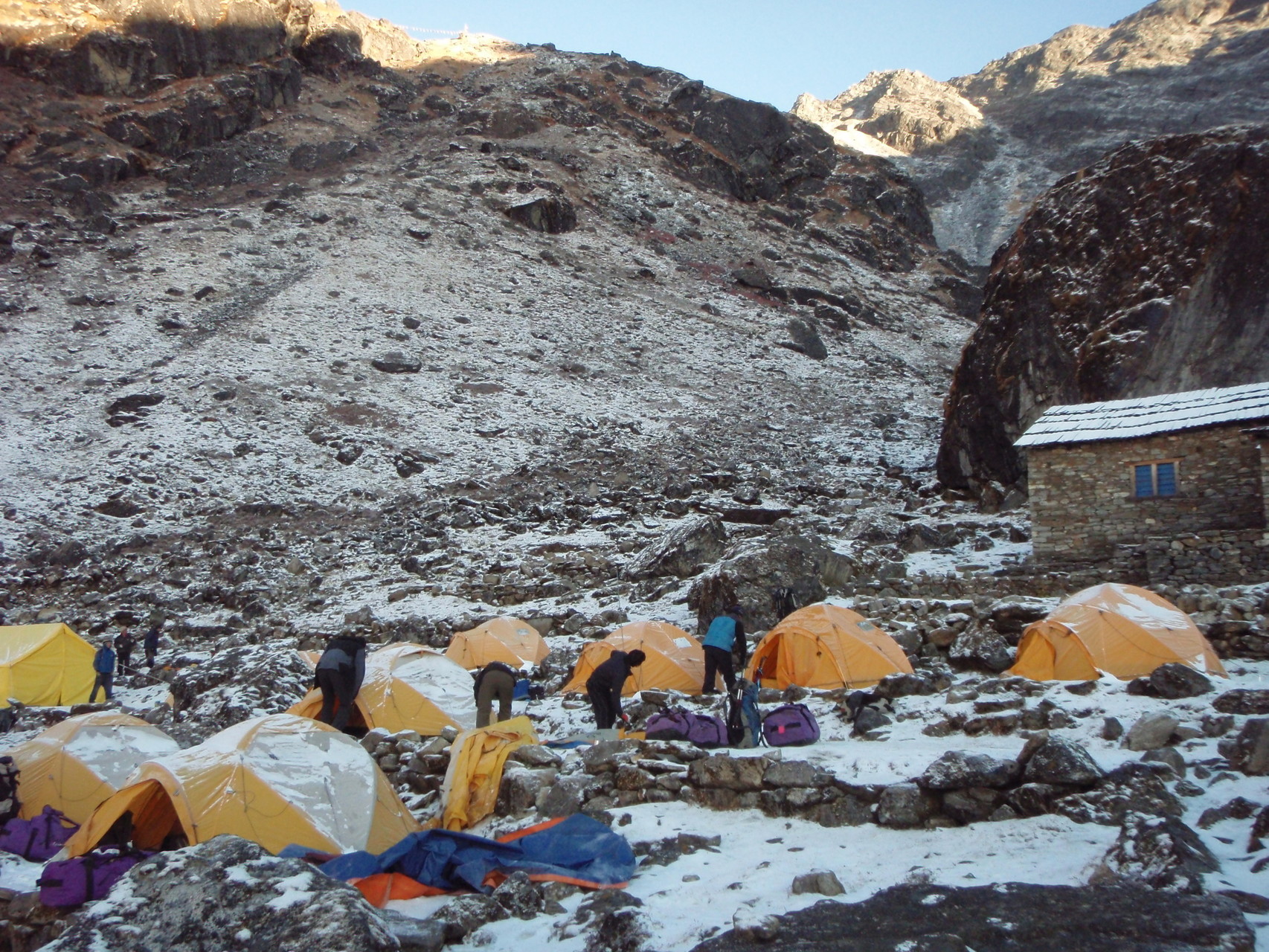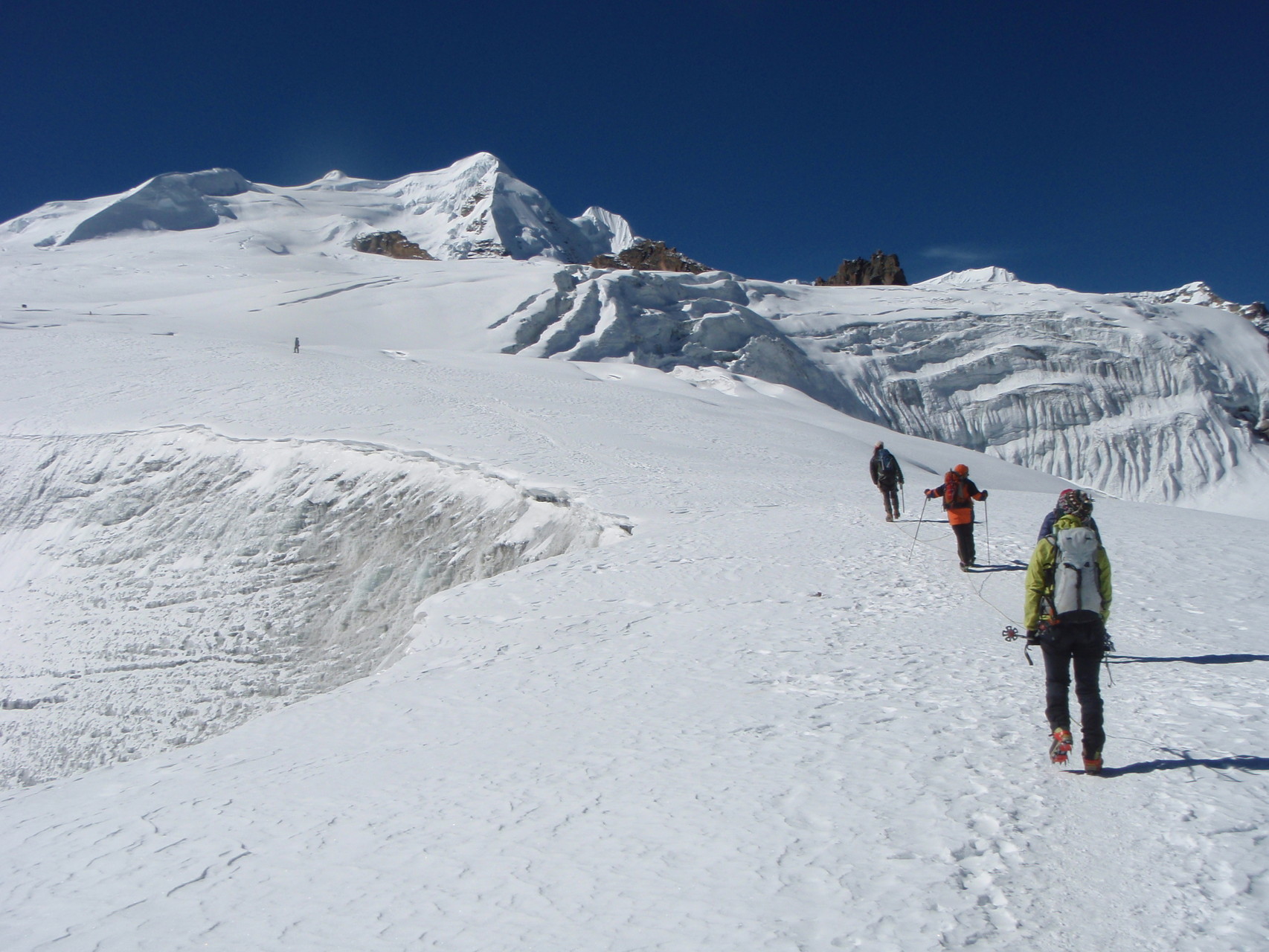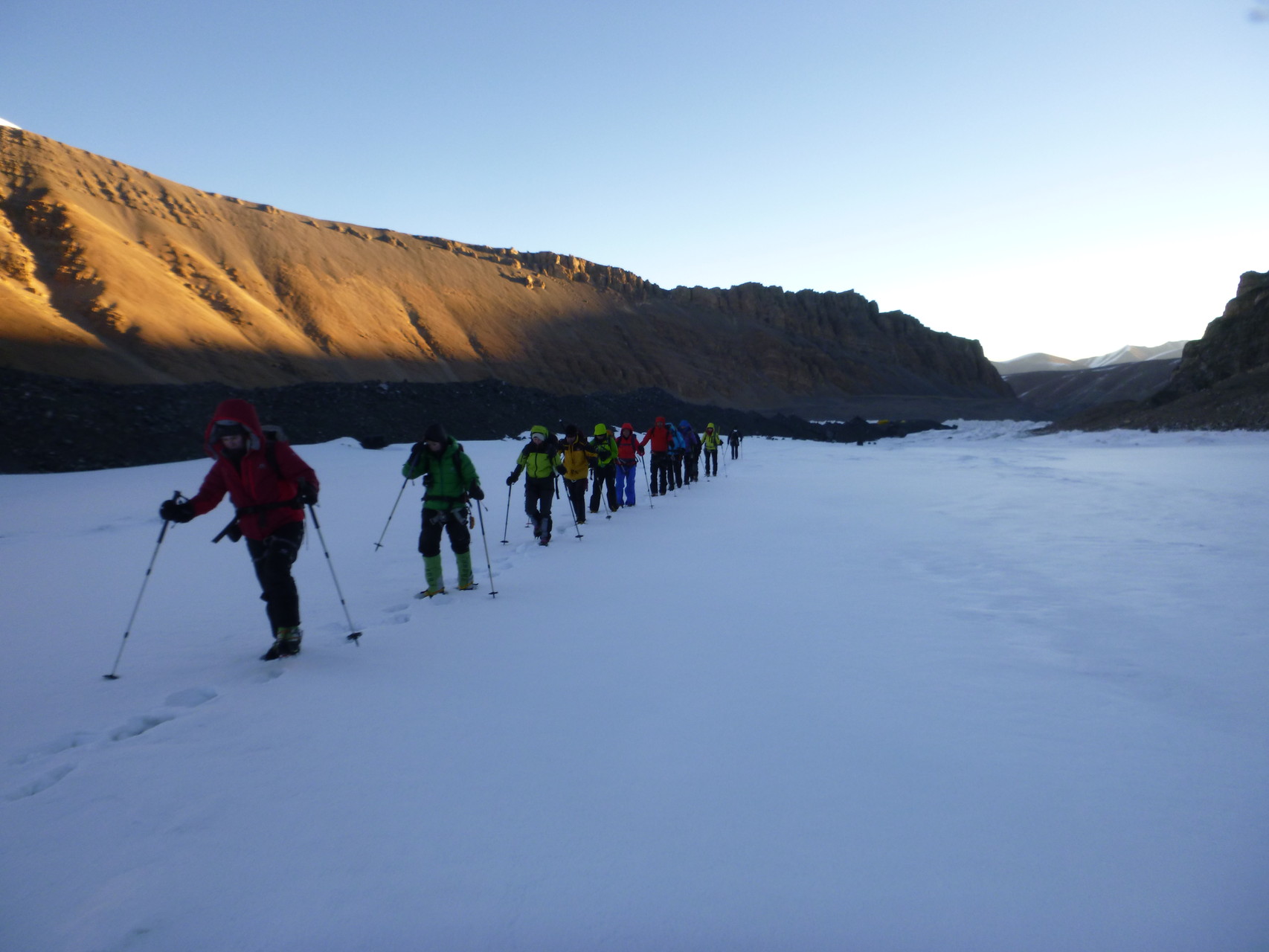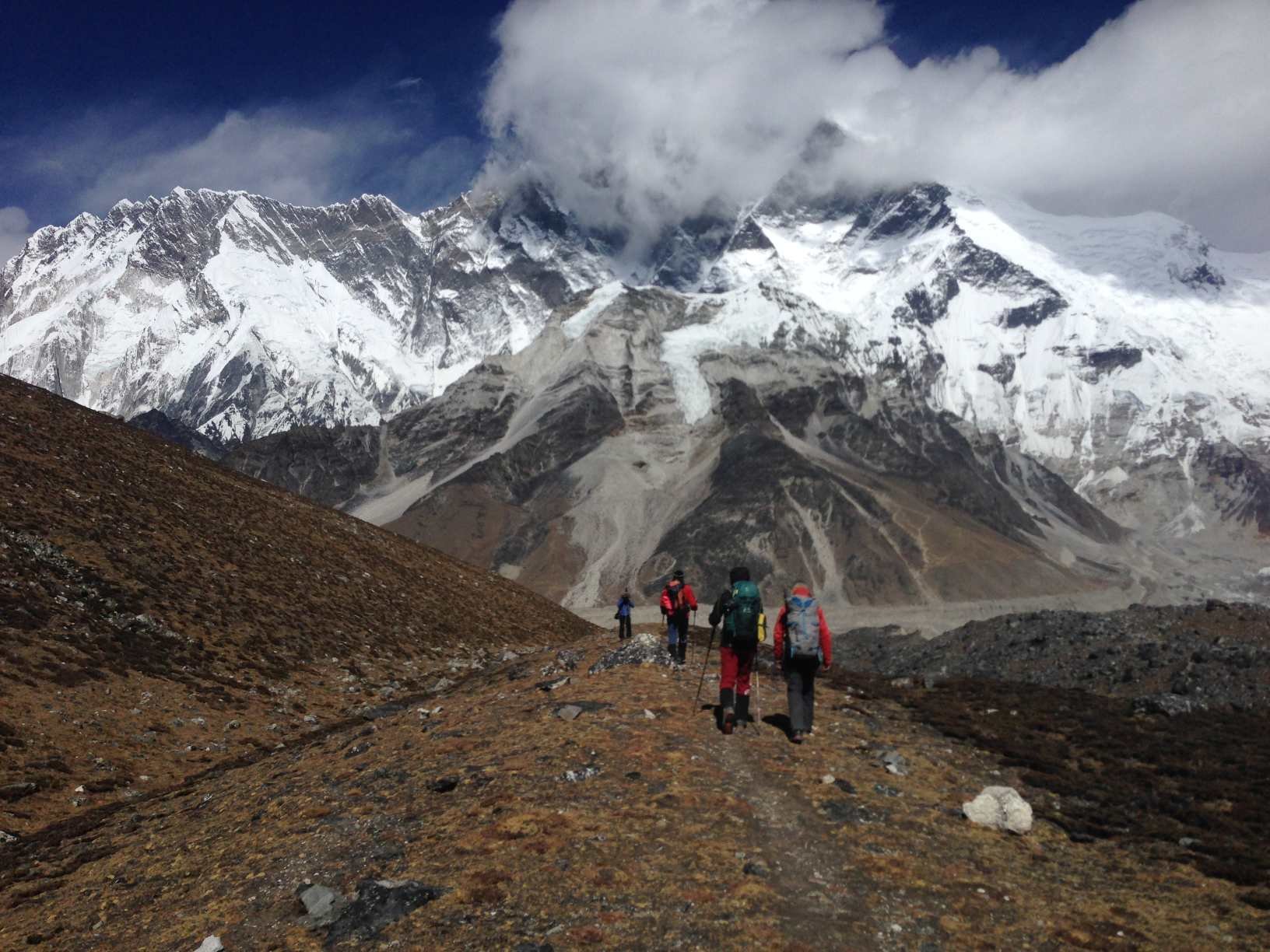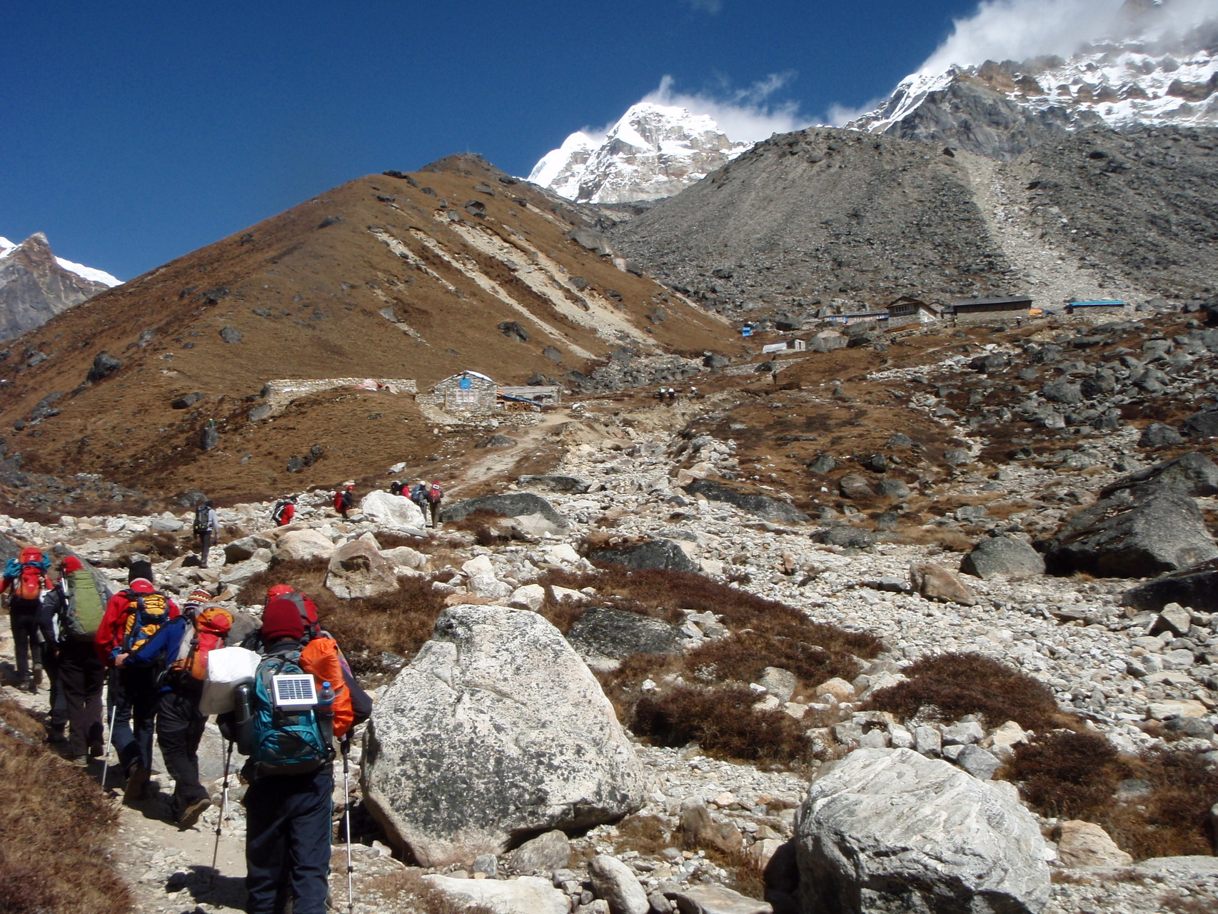 Während die Heimat der Sherpas, das Solo Khumbu, durch seine gute Erschlossenheit von Trekkern oft besucht wird, ist das Hinku-Hongu-Gebiet rund um den Mera Peak und den Kusum Kanguru noch sehr ursprünglich geblieben. Wenige Gruppen nehmen jährlich den teilweise beschwerlichen Anmarsch zu den Gipfeln des oberen Hinku-Tales auf sich. Wer aber einmal diese wilde Abgeschiedenheit kennengelernt hat, wird lange davon zehren können. Nach dem Überqueren des 4.600 m hohe Zatrawa La Pass ging es bis an das Ende des Hinku Tal zum Gipfel des Mera Peak Central, einem Aussichtspunkt mit spektakulärer Aussicht auf fünf Achttausender: den Cho Oyu im Nordwesten, Everest und Lhotse im Norden und Makalu sowie Kangchendzönga im Nordosten.