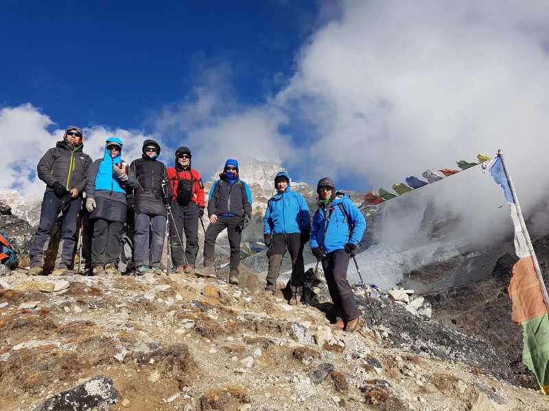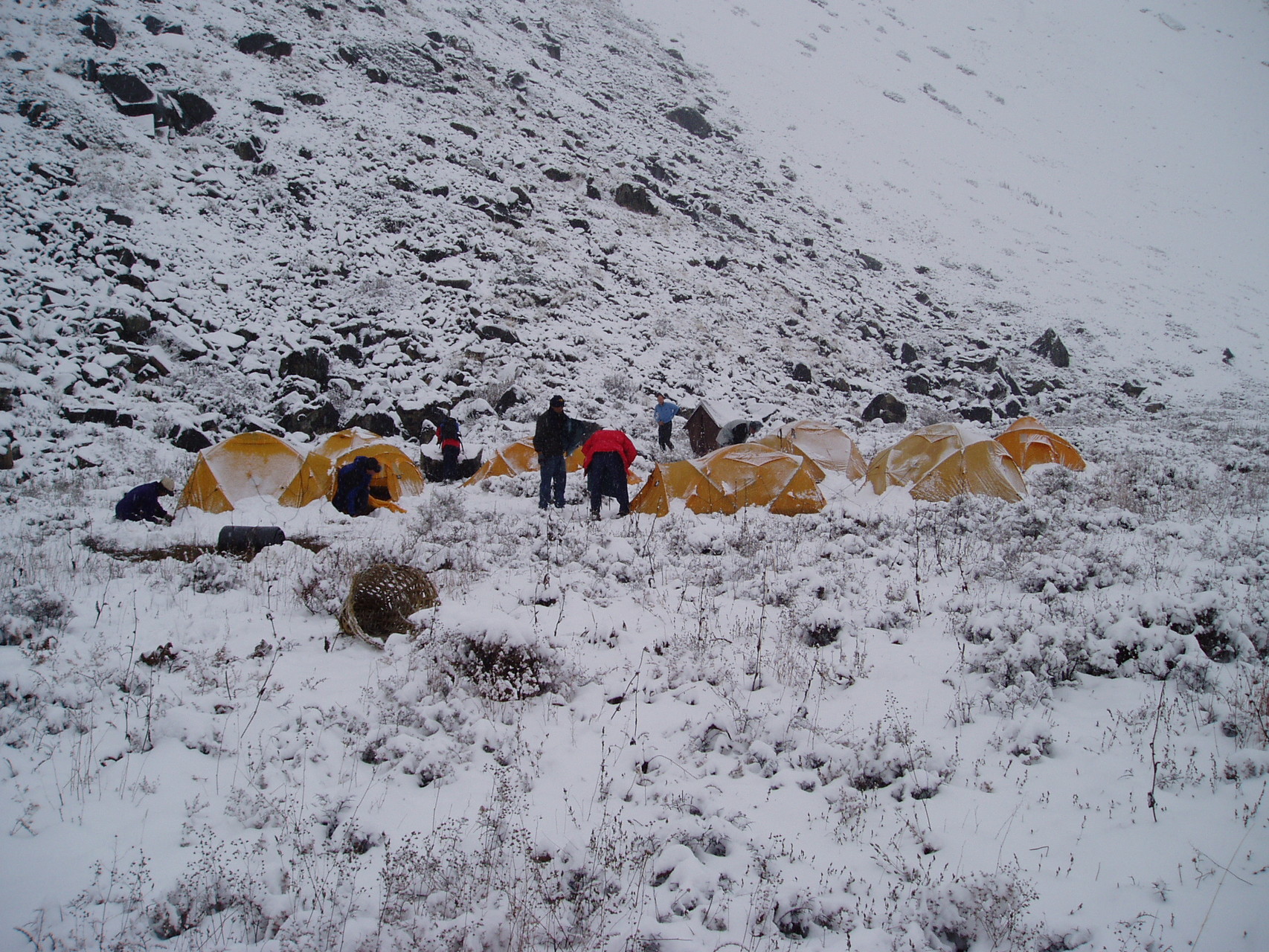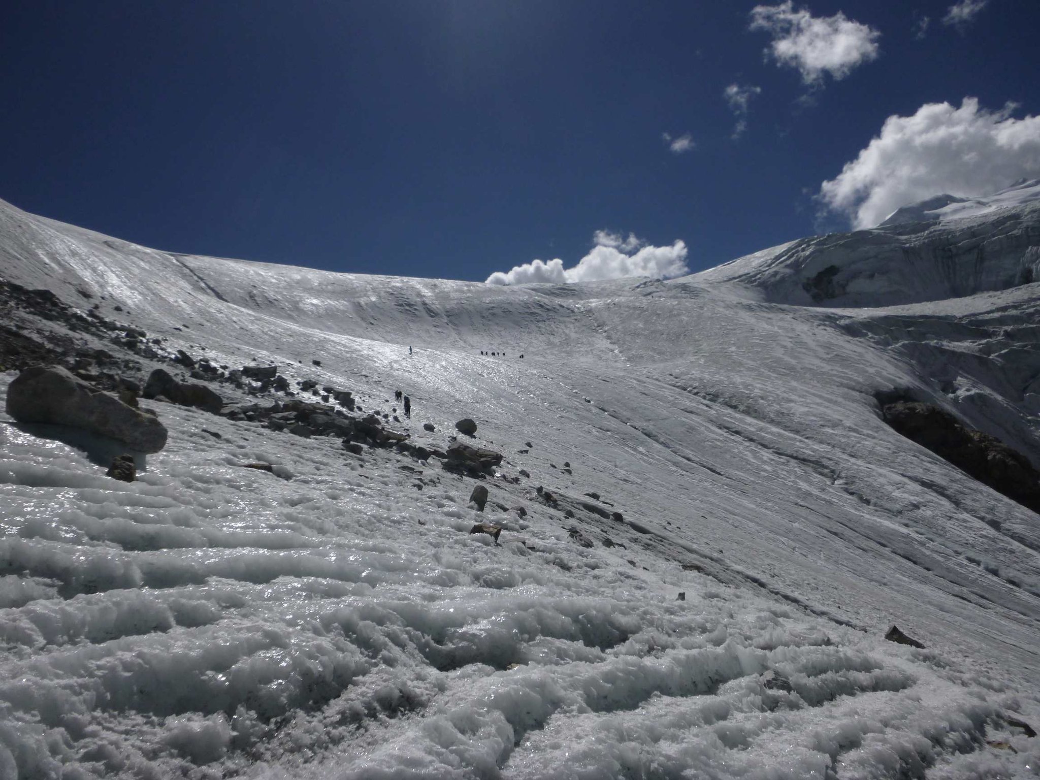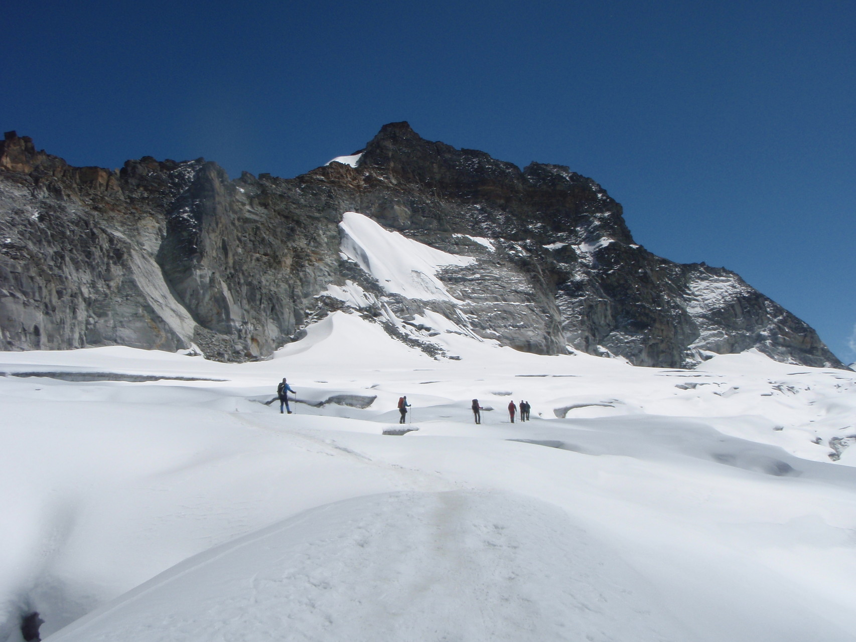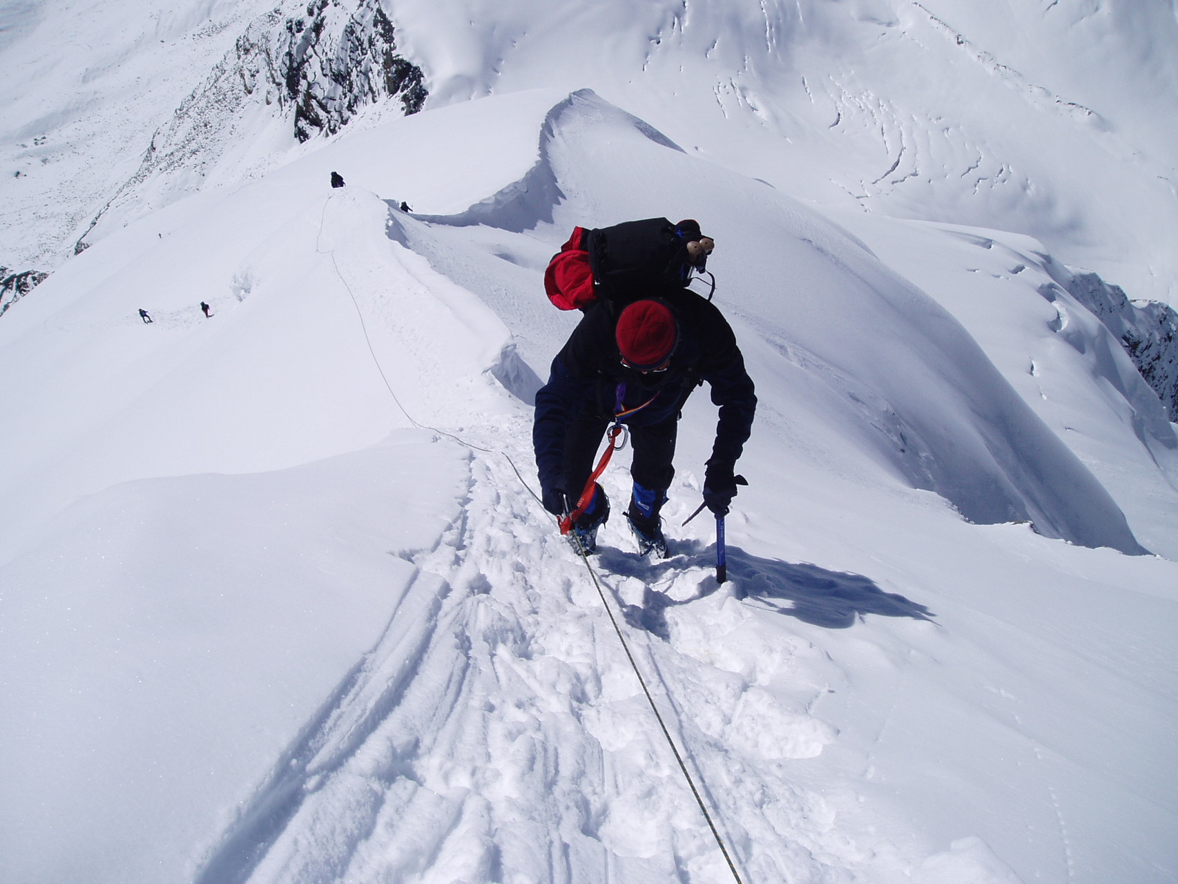Während die Heimat der Sherpas, das Solo Khumbu, durch seine gute Erschlossenheit von Trekkern oft besucht wird, ist das Hinku-Hongu-Gebiet rund um den Mera Peak und den Kusum Kanguru noch sehr ursprünglich geblieben. Wenige Gruppen nehmen jährlich den teilweise beschwerlichen Anmarsch zu den Gipfeln des oberen Hinku-Tales auf sich. Wer aber einmal diese wilde Abgeschiedenheit kennengelernt hat, wird lange davon zehren können. Nach dem Überqueren des 4.600 m hohe Zatrawa La Pass ging es bis an das Ende des Hinku Tal zum Gipfel des Mera Peak Central, einem Aussichtspunkt mit spektakulärer Aussicht auf fünf Achttausender: den Cho Oyu im Nordwesten, Everest und Lhotse im Norden und Makalu sowie Kangchendzönga im Nordosten.