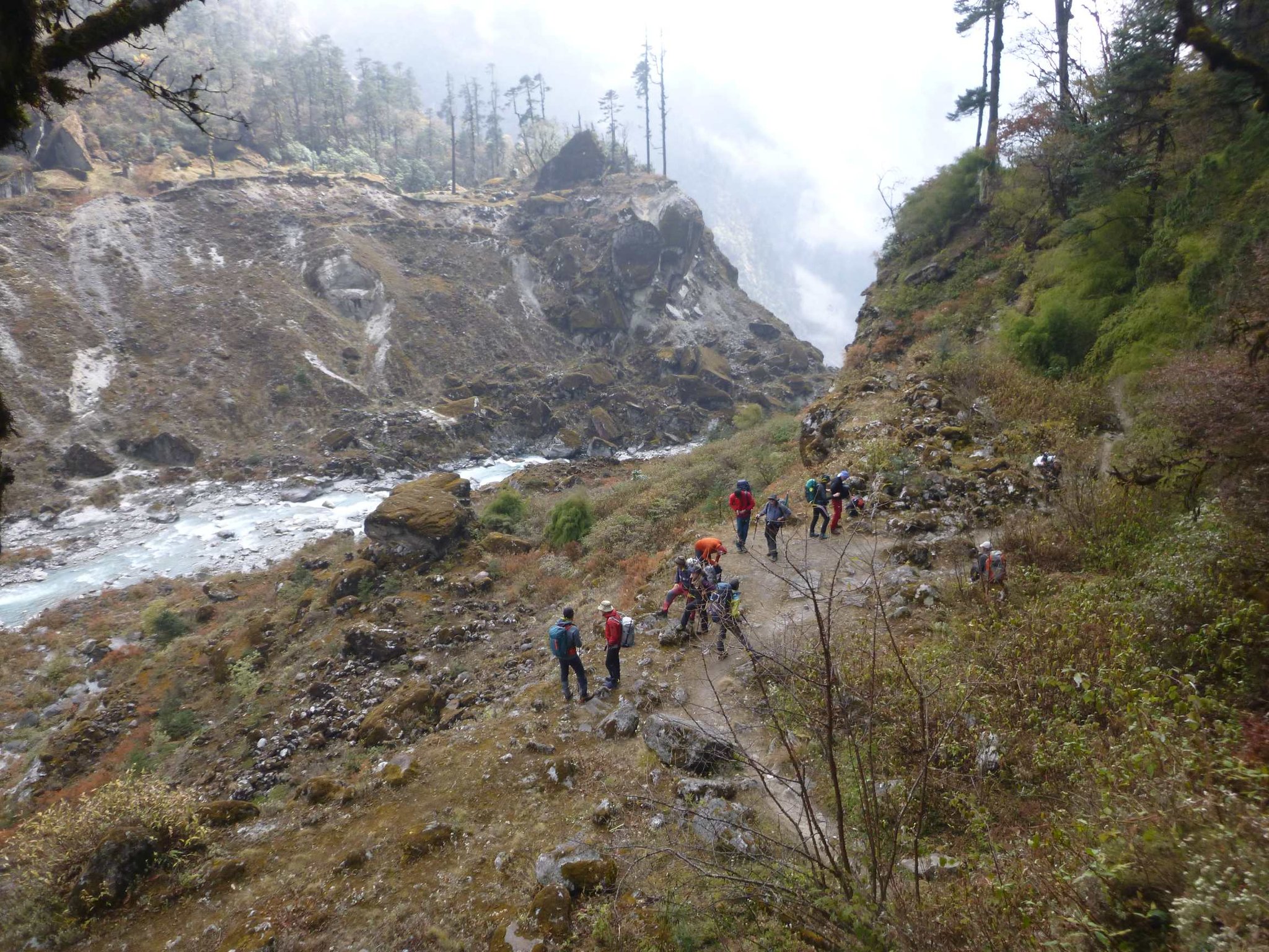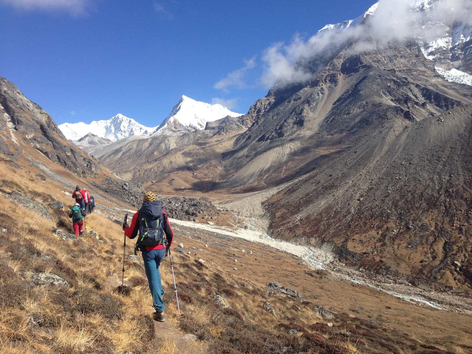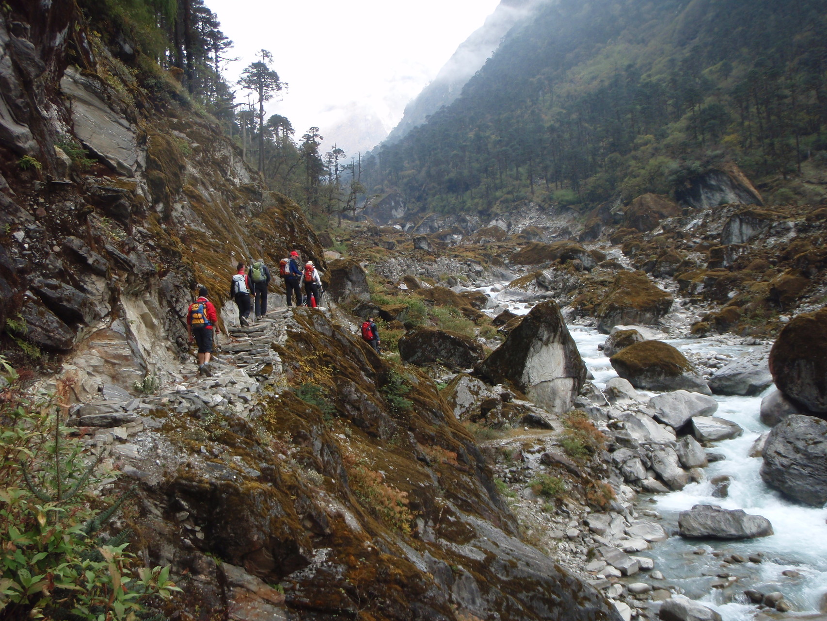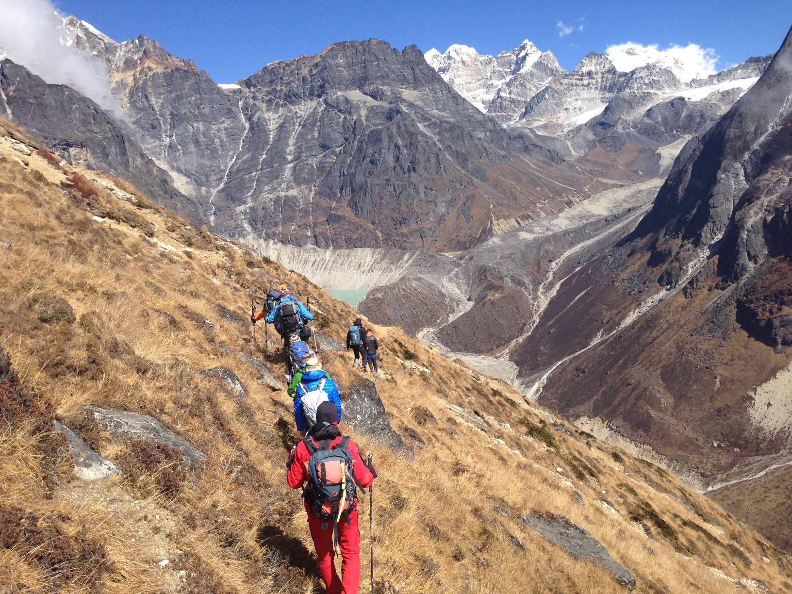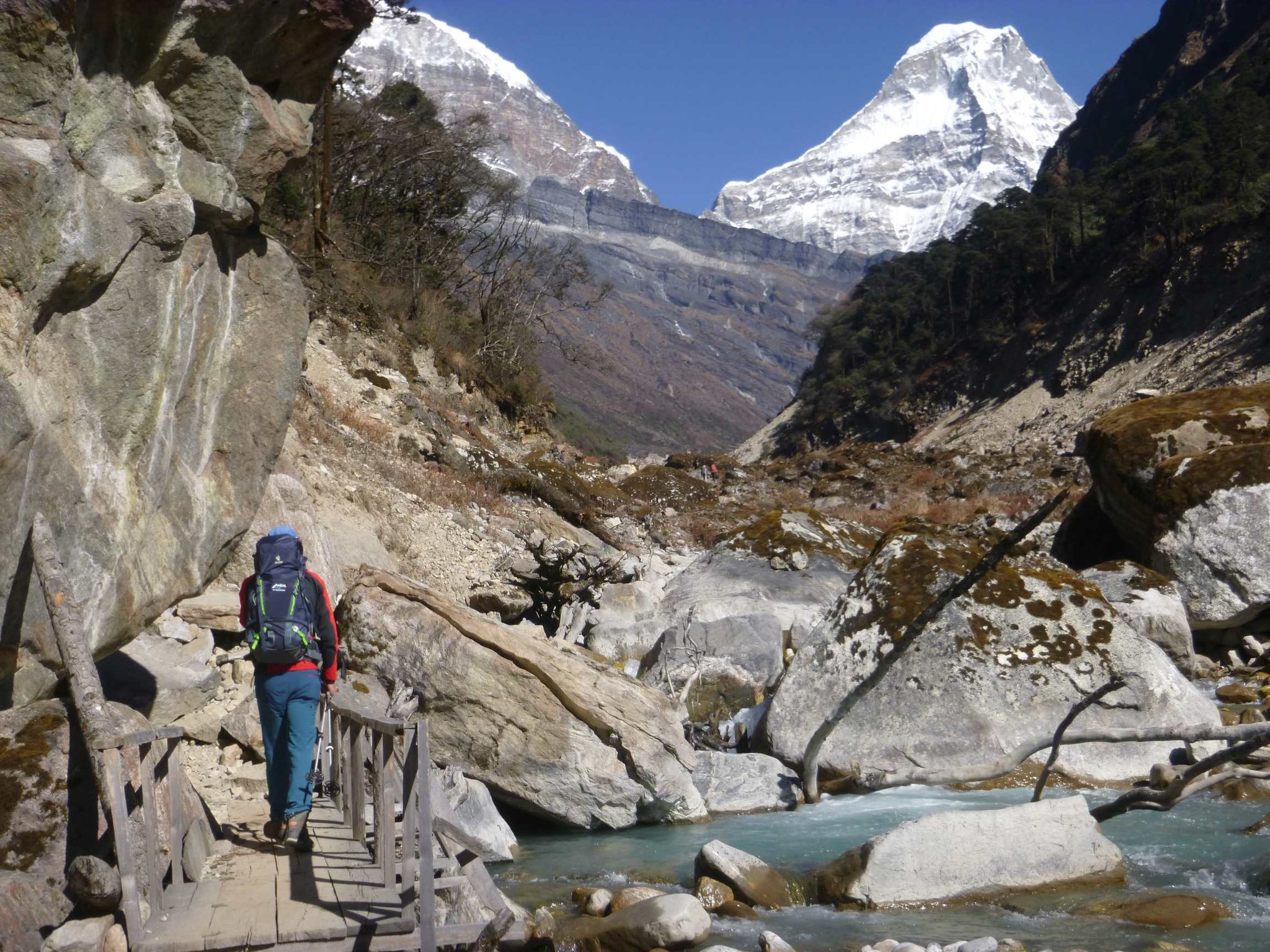 Die klassische, immer noch sehr ursprüngliche Rolwaling- Durchquerung mit der Überschreitung des 5.755 m hohen Trashi Labtsa, gehört zu den eindrucksvollsten und anspruchsvollsten Trekkingrouten Nepals, führt sie doch durch einsames Hochgebirge mit riesigen, spaltenreichen Gletschern. Besonders faszinierend ist die Gestalt des Gaurisankar (7.146 m) auch Jomo Tseringma genannt. Dieser Berg scheint von Kath- mandu oder Nagarkot aus die höchste Erhebung im Himalayakranz zu sein und wurde deshalb sehr lange für den höhsten Berg der Welt gehalten.