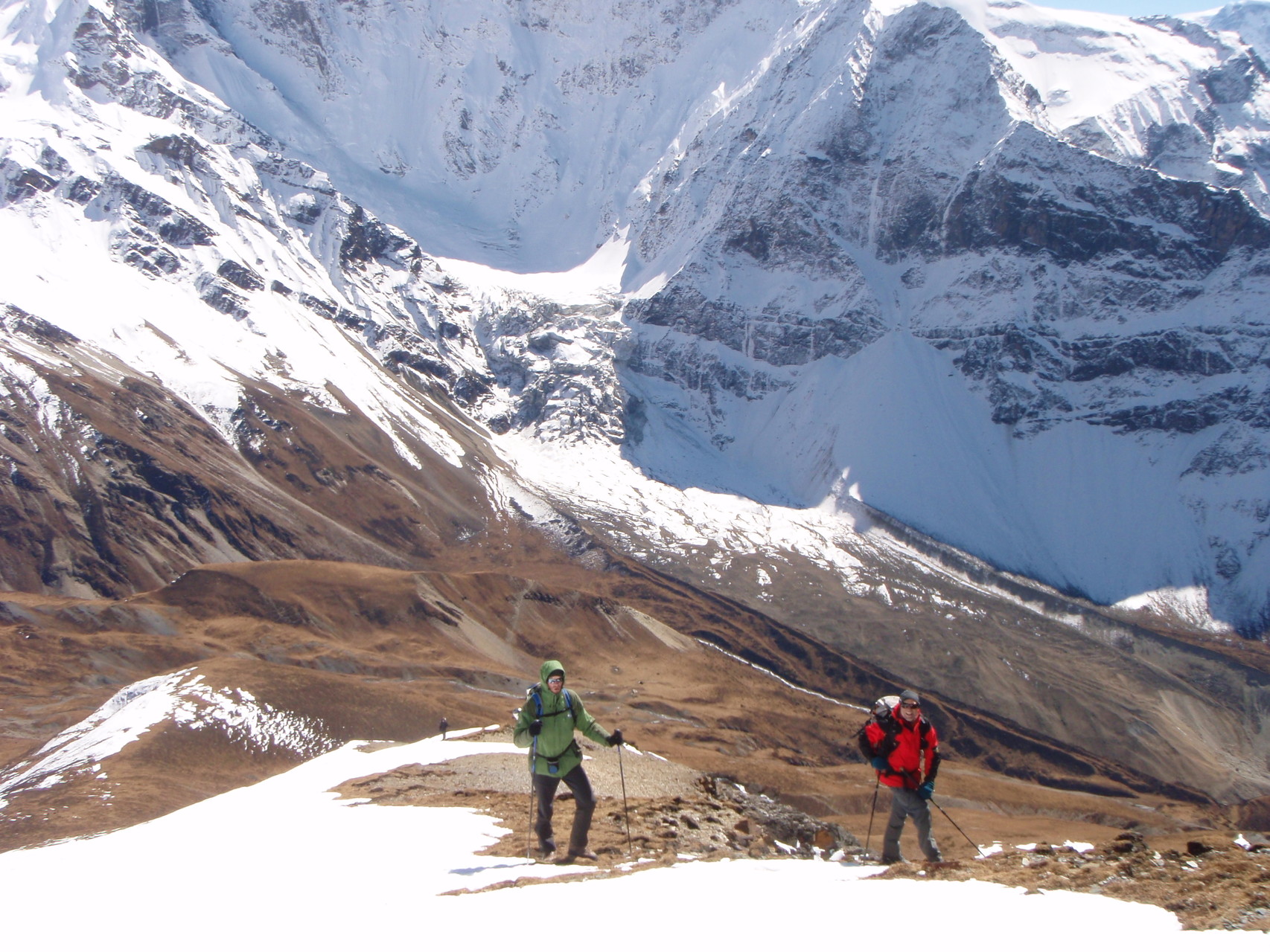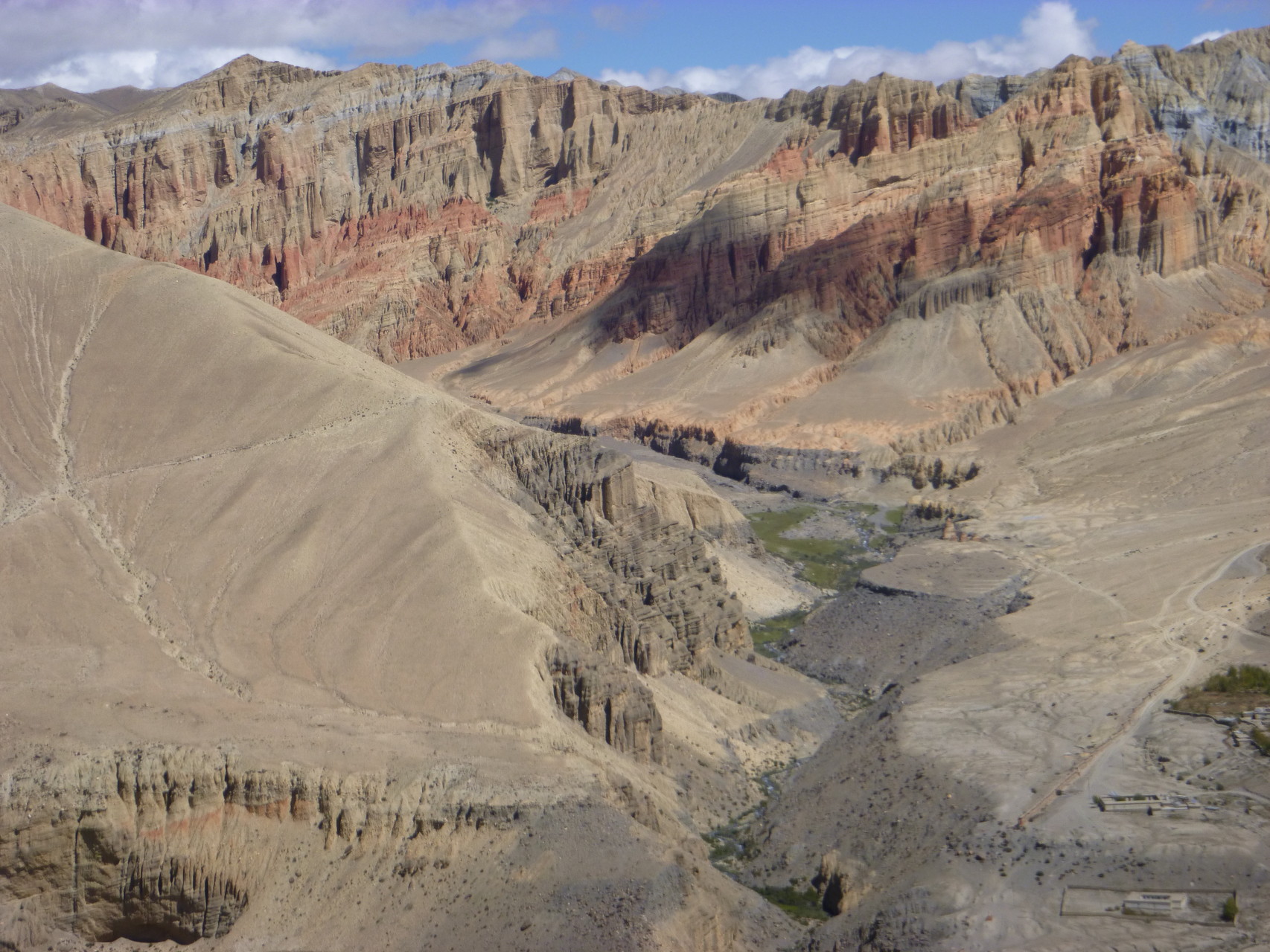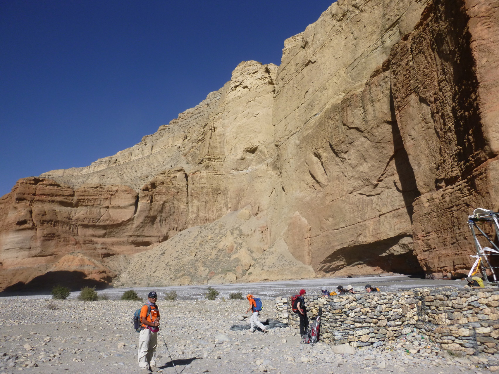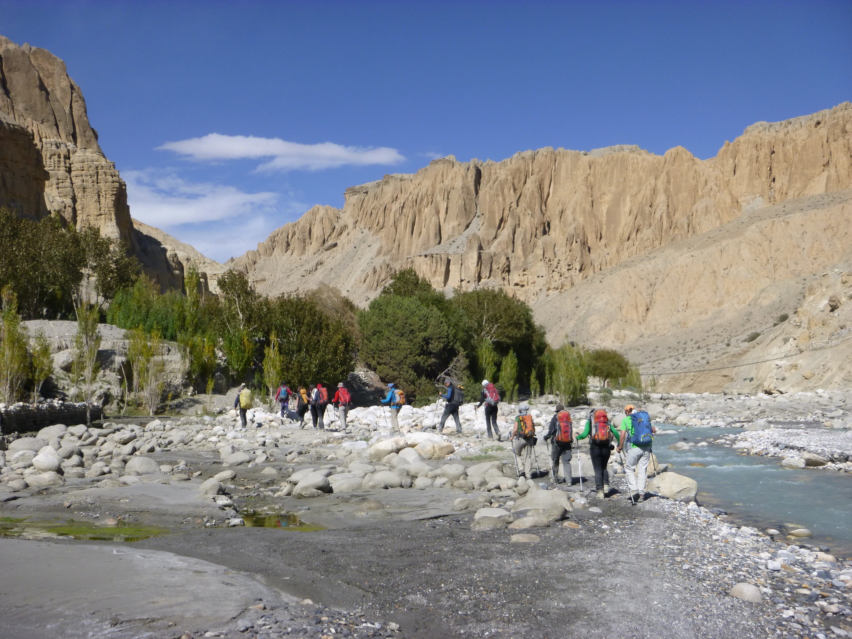 Über den Mustang Pass (6042 m) von Lo-Manthang ins Naar Phu Valley mit Seribung Peak (6328 m). Bis 1991 war das Mustang völlig isoliert. Eine allmähliche Öffnung mit strengen Besuchervorschriften hat dieses frühere „Königreich“ als absolutes Juwel unter Nepals Trekking-Gebieten erhalten. Alleine schon die Landschaftsformen und -farben mit grellorangen Felswänden, bunten Canyons und wilden Erosionsgebilden sind einen Besuch wert. Inzwischen ist es nun möglich vom Mustang Gebiet über den vergletscherten „De Hults“- bzw. Mustang-Pass ins spät geöffnete Naar Phu Tal zu kommen. Bergsteigerischer Höhepunkt dieses absolut außergewöhnlichen Trekkings ist die allmähliche Annährung an die Welt der stark vergletscherten 6000- und 7000er des Damodar-Himals. In der Hochgebirgslandschaft konnte vom Mustang-Pass der Seribung Peak (6328 m) bestiegen werden.