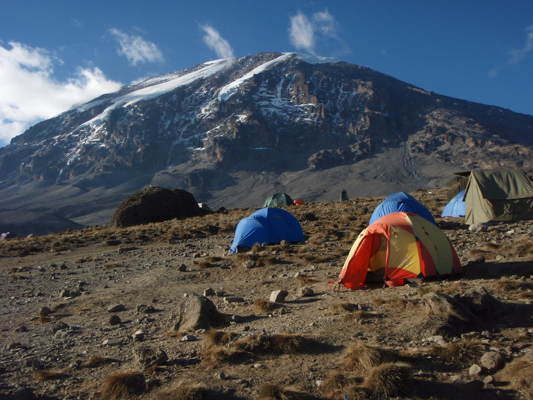Kilimanjaro, einer der "Seven Summits", ist gleichzeitig die größte freistehende Erhebung der Erdoberfläche. Aus einer rund 1000 m hohen Savannenlandschaft ragt sein gewaltiges Massiv von 50 x 80 km Grundfläche noch einmal fast 5000 m majestätisch in die Höhe.