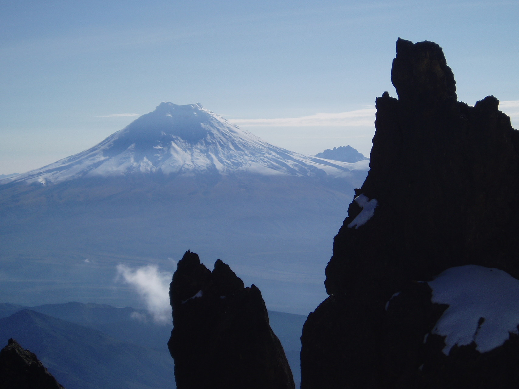 Unsere Ziele, die hohen Gipfel der teilweise vergletscherten Andenvulkane - Illiniza Northe (5.116 m), Cotopaxi (5.897 m), Chimborazo (6.310 m), Cayamba (5.790 m).