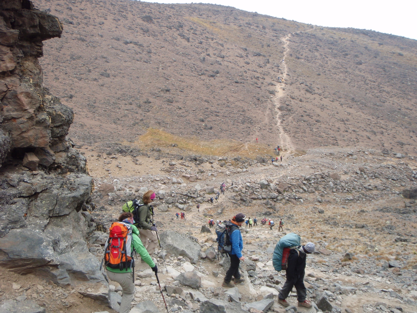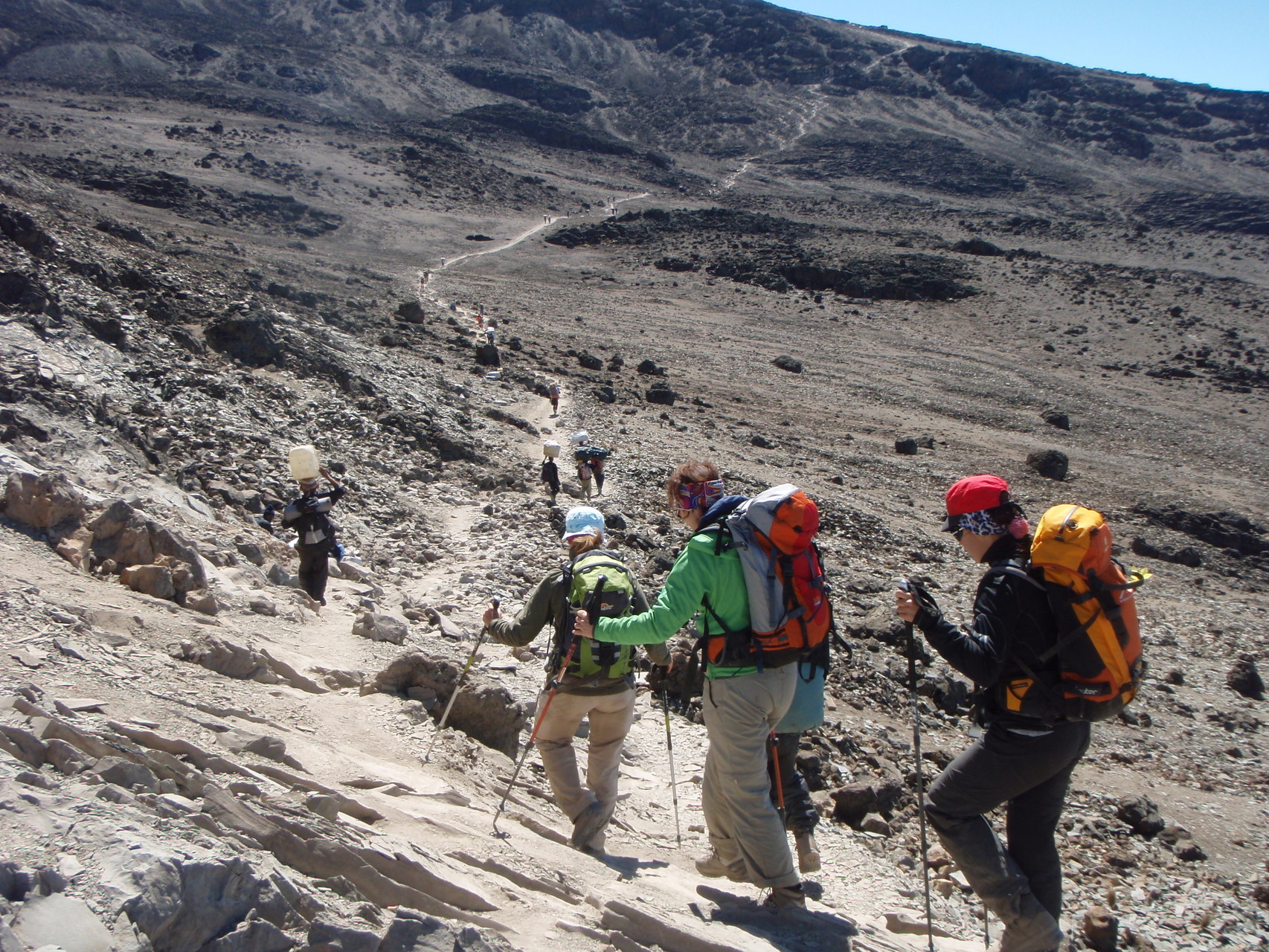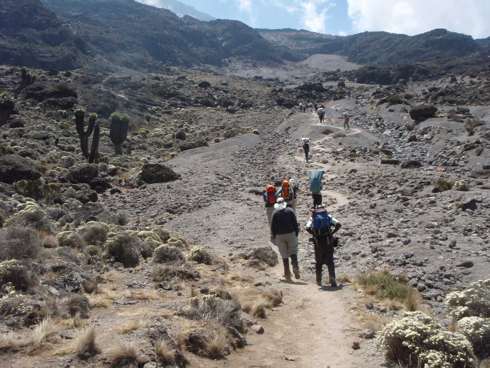 Unterwegs auf der "Machame Route" lernten wir den Kilimanjaro von verschiedenen Seiten kennen. So querten wir den Berg an der fast gesamten Südseite, dem so genannten "Southern Circuit". Der Abstieg erfolgte über die "Mweka Route".