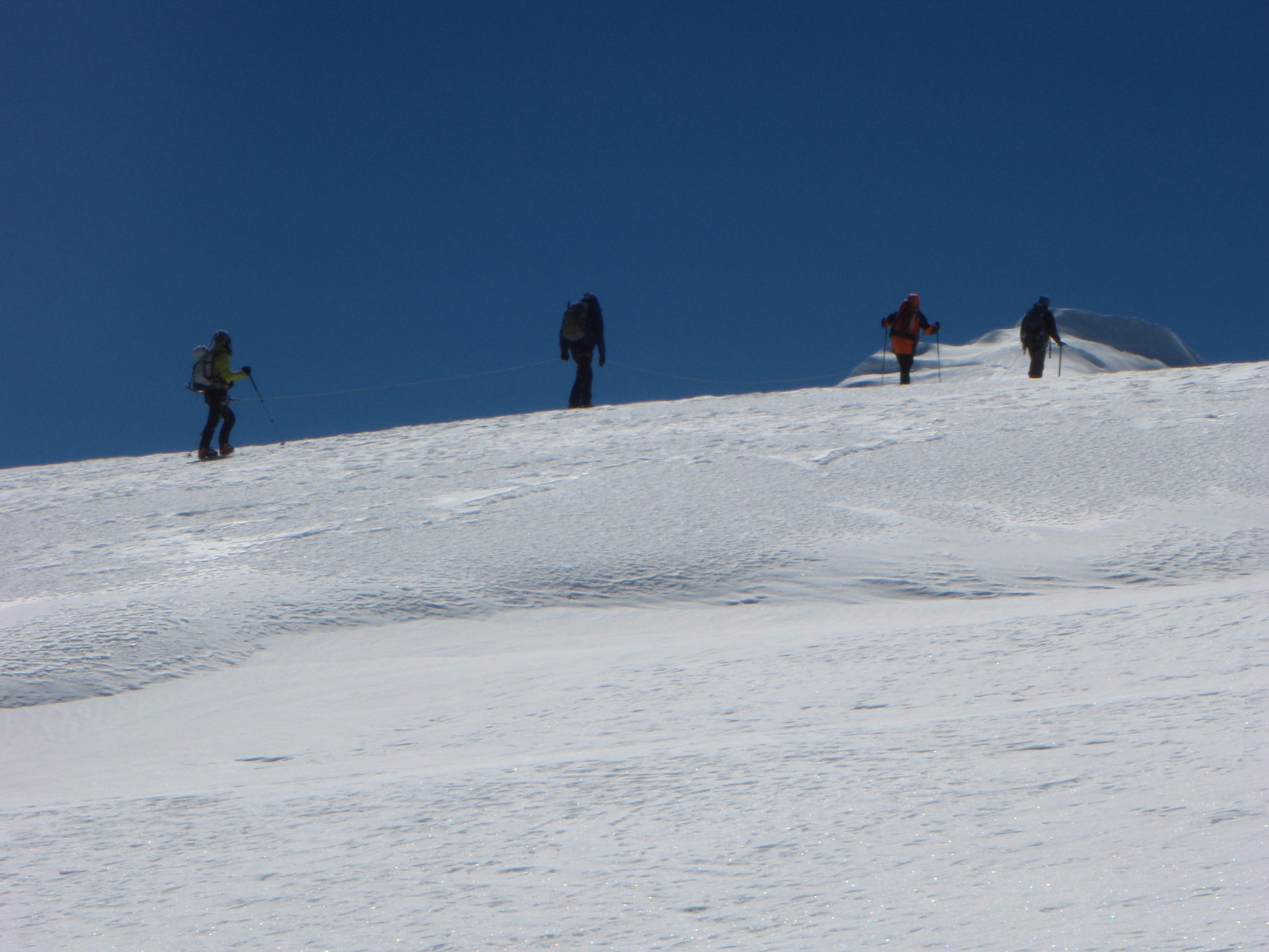 Während die Heimat der Sherpas, das Solo Khumbu, durch seine Erschlossenheit von Trekkern oft besucht wird, ist das Hinku-Hongu-Gebiet rund um den Mera Peak und den Kusum Kangguru noch etwas ursprünglich geblieben. Weniger Gruppen nehmen jährlich den teilweise beschwerlichen Anmarsch zu den Gipfeln des oberen Hinku-Tales auf sich. Wer aber einmal diese wilde Abgeschiedenheit kennen gelernt hat, wird lange davon zehren können. Mit dem Gipfel des Mera Peak Central erreichten wir einen Aussichtspunkt mit spektakulärer Aussicht auf fünf Achttausender und jede Menge 6.000er und 7.000er.