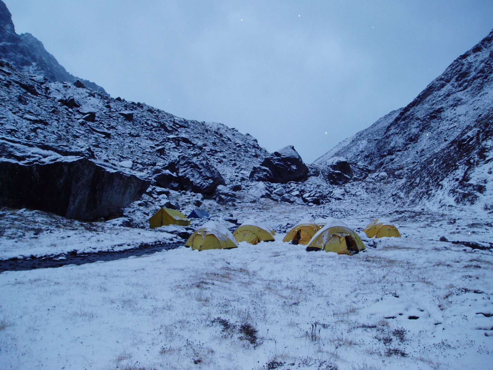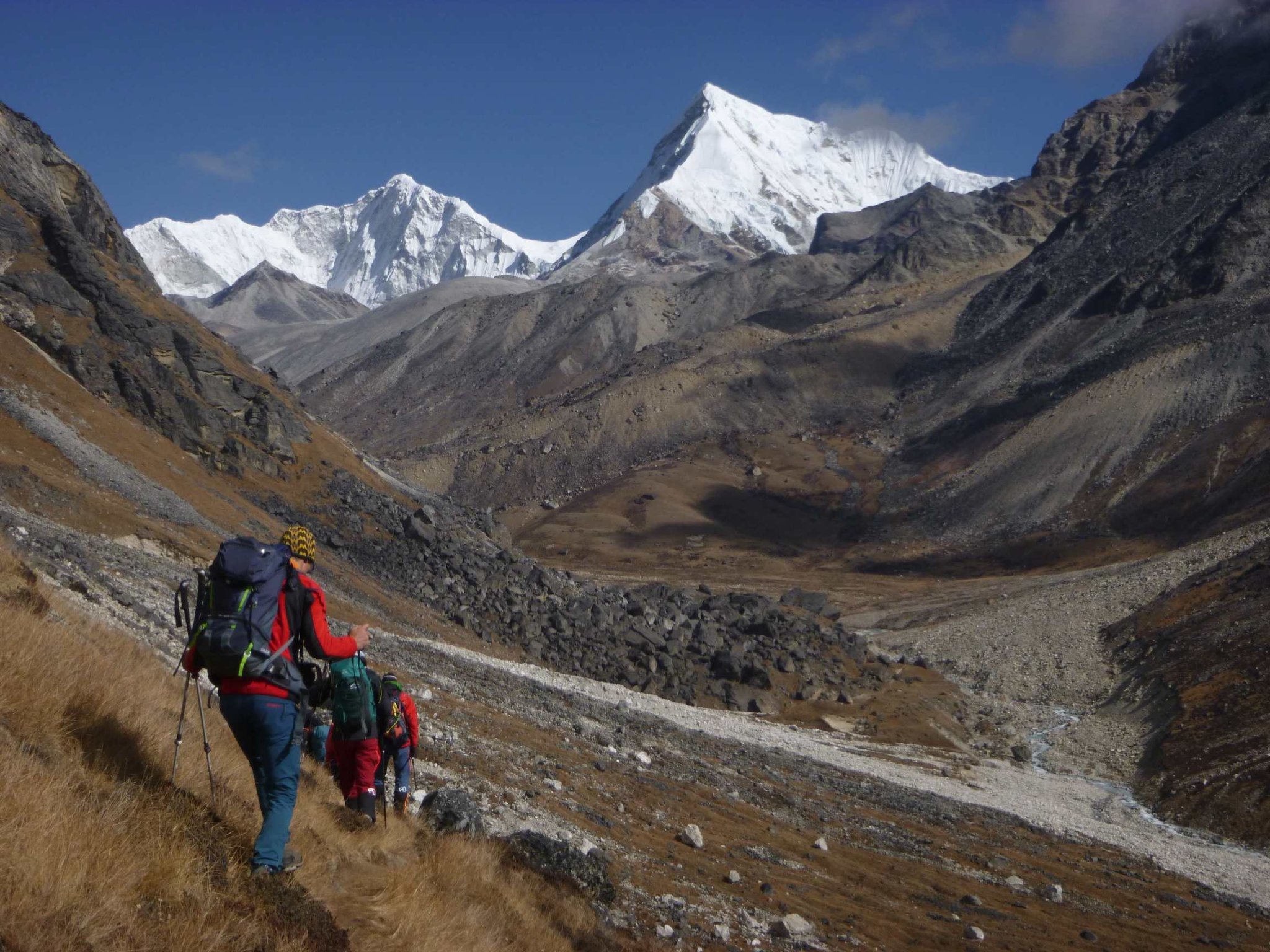 Der Rückweg führte vom Mera La in das einsame Hongu Tal und von dort über den 5.850 m hohen Ambu Laptsa Pass zurück in das Solo Khumbu nach Lukhla.